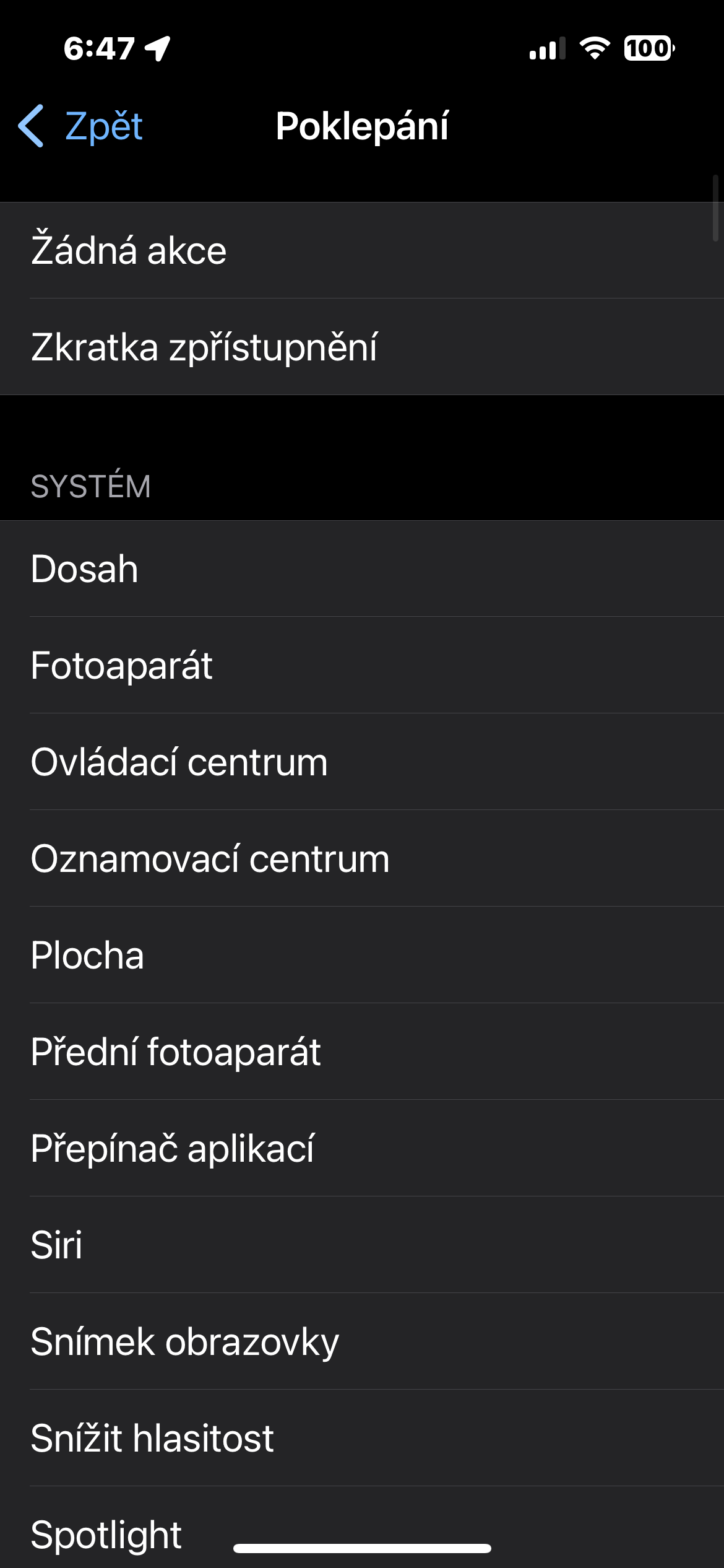 Jak na iPhonu aktivovat klepnutí na zadní stranu