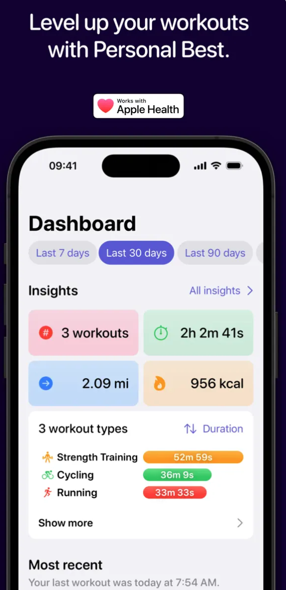 Personal Best je aplikace, která vám pomůže sledovat vaše tréninky a zlepšovat vaše výkony. Synchronizuje se s aplikací Apple Zdraví a zobrazuje vám srozumitelné přehledy o vašich trénincích. Díky tomu máte neustále přehled o svých pokrocích a můžete se motivovat k překonávání svých nejlepších výsledků. Personal Best nabízí i praktické widgety pro zamykací obrazovku, které vám umožní rychlý přístup k informacím o vašich posledních trénincích a celkových trendech.