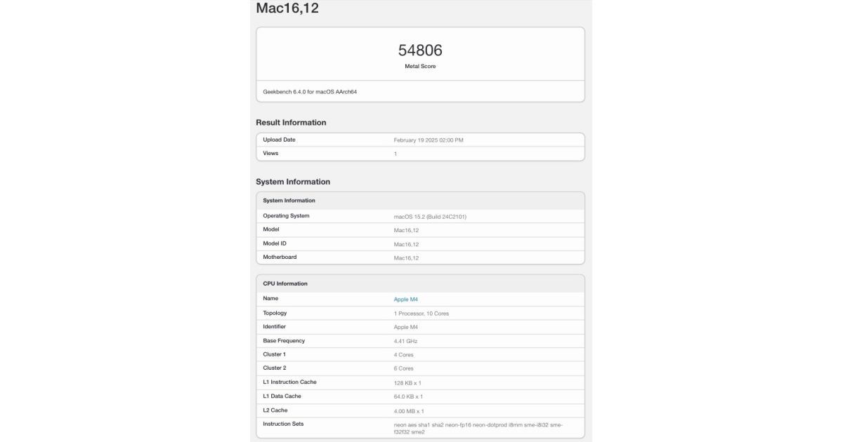 CPU měření sice uniklý Geekbench neodhalil, zato nám však poodkryl skóre, které získal čip v měření Metal a OpenCL. Vyšší Metal znamená lepší výkon v grafických aplikacích, hrách a profesionálních programech (např. Final Cut Pro, Blender). OpenCL zase ukazuje, jak rychle zařízení (hlavně GPU) zvládá výpočty mimo grafiku, například při renderování videí, 3D modelů nebo vědeckých simulacích. A asi vás příliš nepřekvapí, že v obou případech čip M4 své předešlé generaci velmi slušně uskočil.