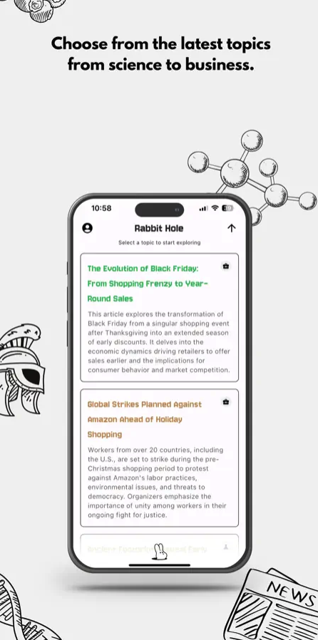 S aplikací Rabbit Hole AI se každý den ponoříte do světa nekonečné zábavy a vzdělávání! Nejnovější aktualizace přináší nekonečné denní kvízy, globální žebříček, chytřejší doporučení témat poháněná AI a tolik žádaný tmavý režim pro pohodlné prohlížení. Každý den na vás čeká neomezené množství kvízových otázek na témata jako věda, technologie, umělá inteligence, historie, světové dění nebo umění.