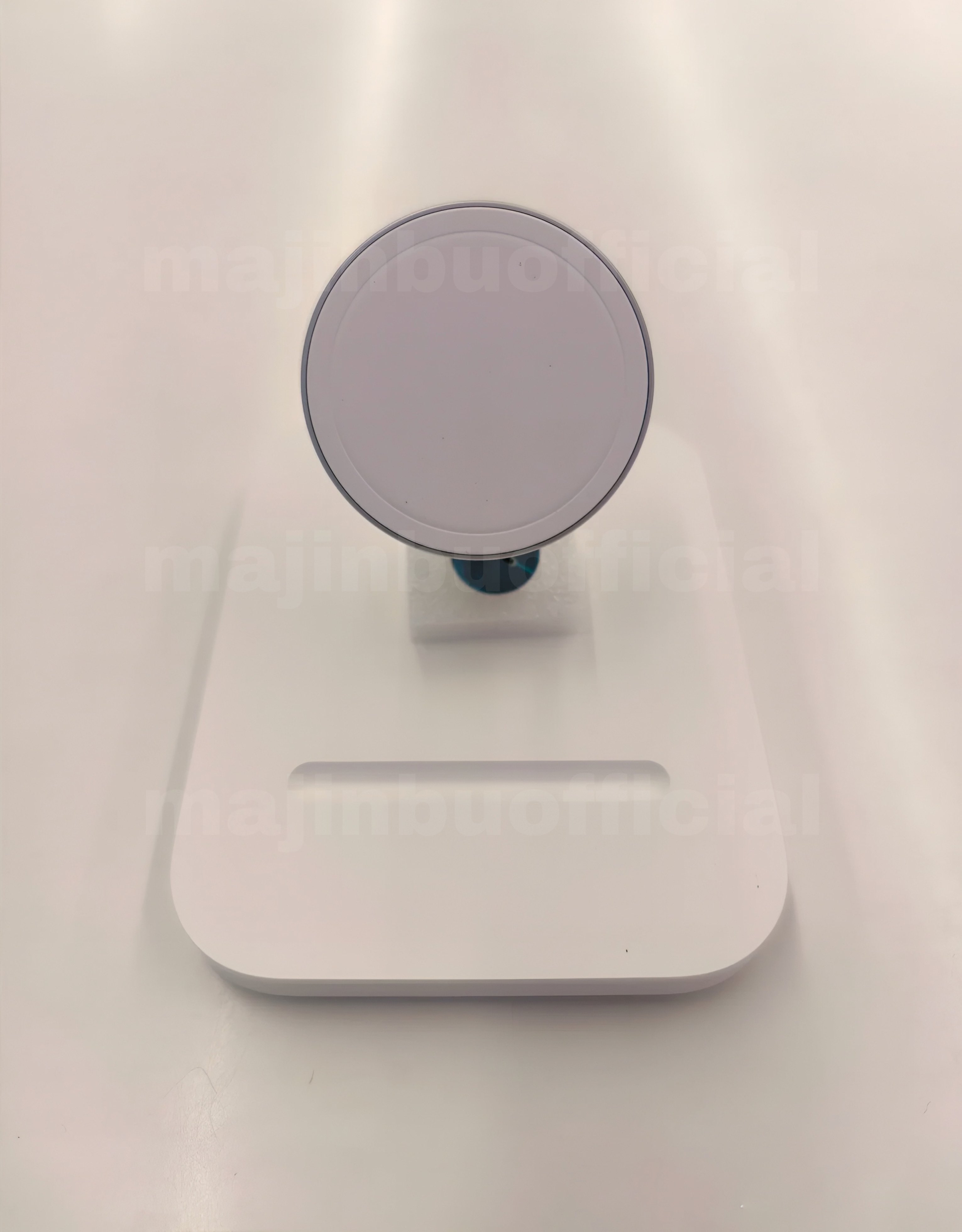 Jak můžete vidět, stojánek vypadá na první pohled jako klasická MagSafe nabíječka, avšak pravdou je, že její zadní kruhová část slouží jen jako opěrka, možná pak s podporou 7,5W bezdrátového nabíjení. Telefon je však o ní jen opřen s tím, že aby nesjel, je třeba jeho spodní hranu umístit do prohlubně v základně stojánku. Přitom stačilo jen přidat MagSafe a Apple mohl vesele využívat řešení, na které je ve svých Apple Storech zvyklý již roky. Chybějící MagSafe je zkrátka škoda.