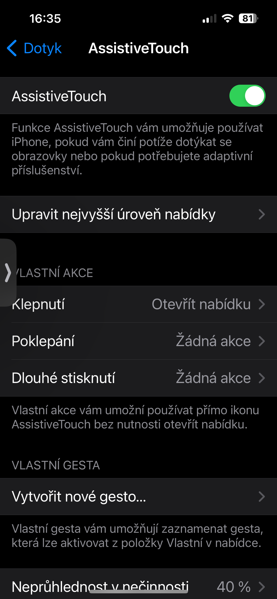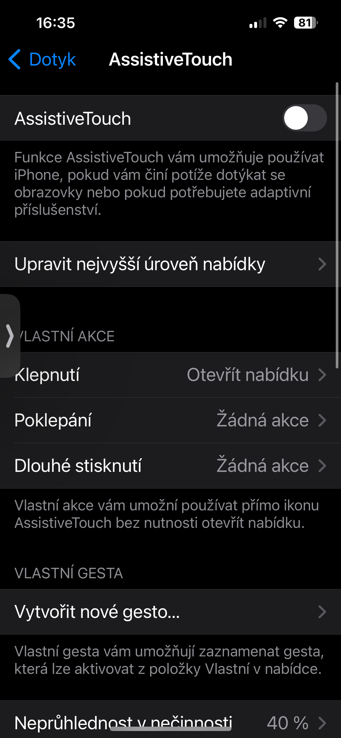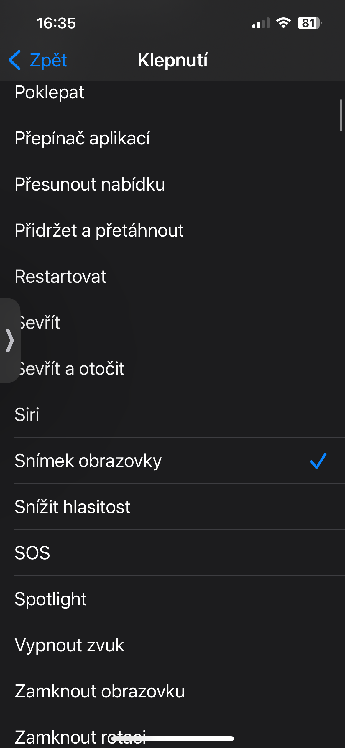 AssistiveTouch je další funkcí zpřístupnění, která umožňuje pořídit screenshot na iPhonu a je k dispozici od operačního systému iOS 6. Tato funkce je určena především pro uživatele, kteří mají potíže s ovládáním zařízení nebo preferují alternativní metody interakce s telefonem. Aktivujte AssistiveTouch v Nastavení -> Zpřístupnění -> Dotyk -> AssistiveTouch a zapněte tuto funkci. Poté si můžete přizpůsobit, jakým gestem nebo stiskem tlačítka chcete pořídit snímek obrazovky. Můžete například přiřadit akci pro pořízení screenshotu k určitému gestu, jako je například poklepání nebo dlouhý stisk. Tento způsob je velmi flexibilní a umožňuje přizpůsobit ovládání iPhonu podle osobních potřeb.
