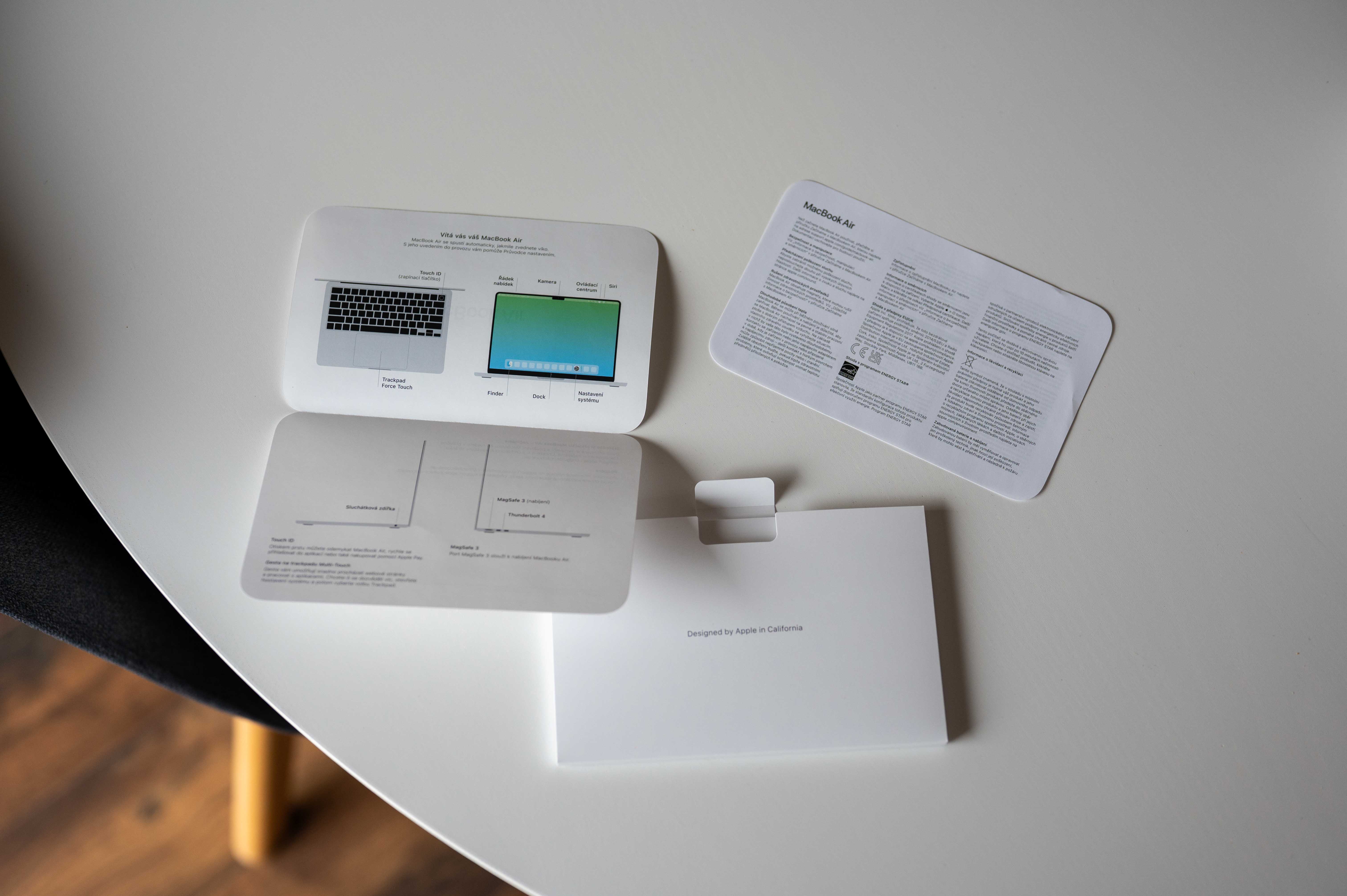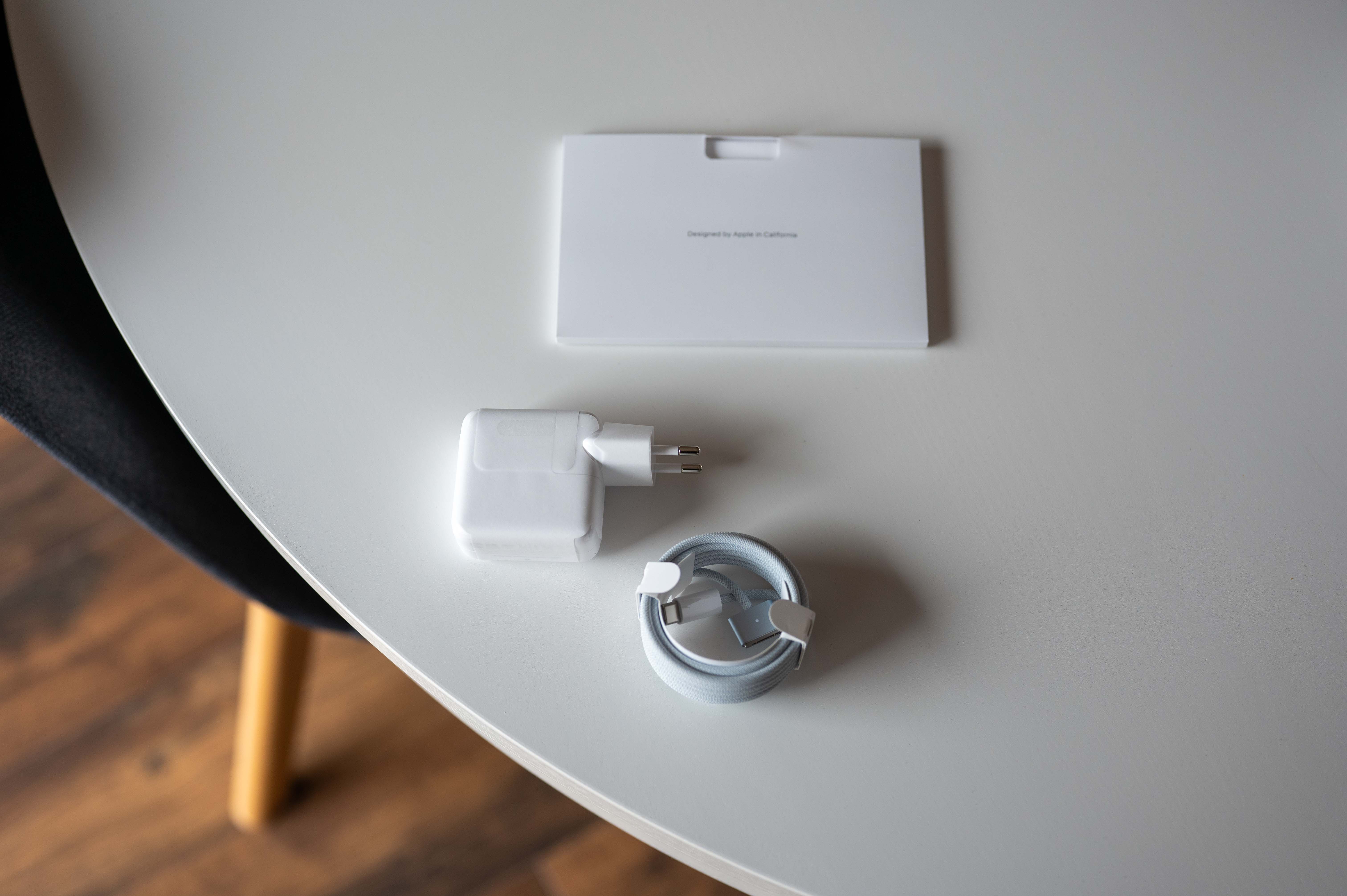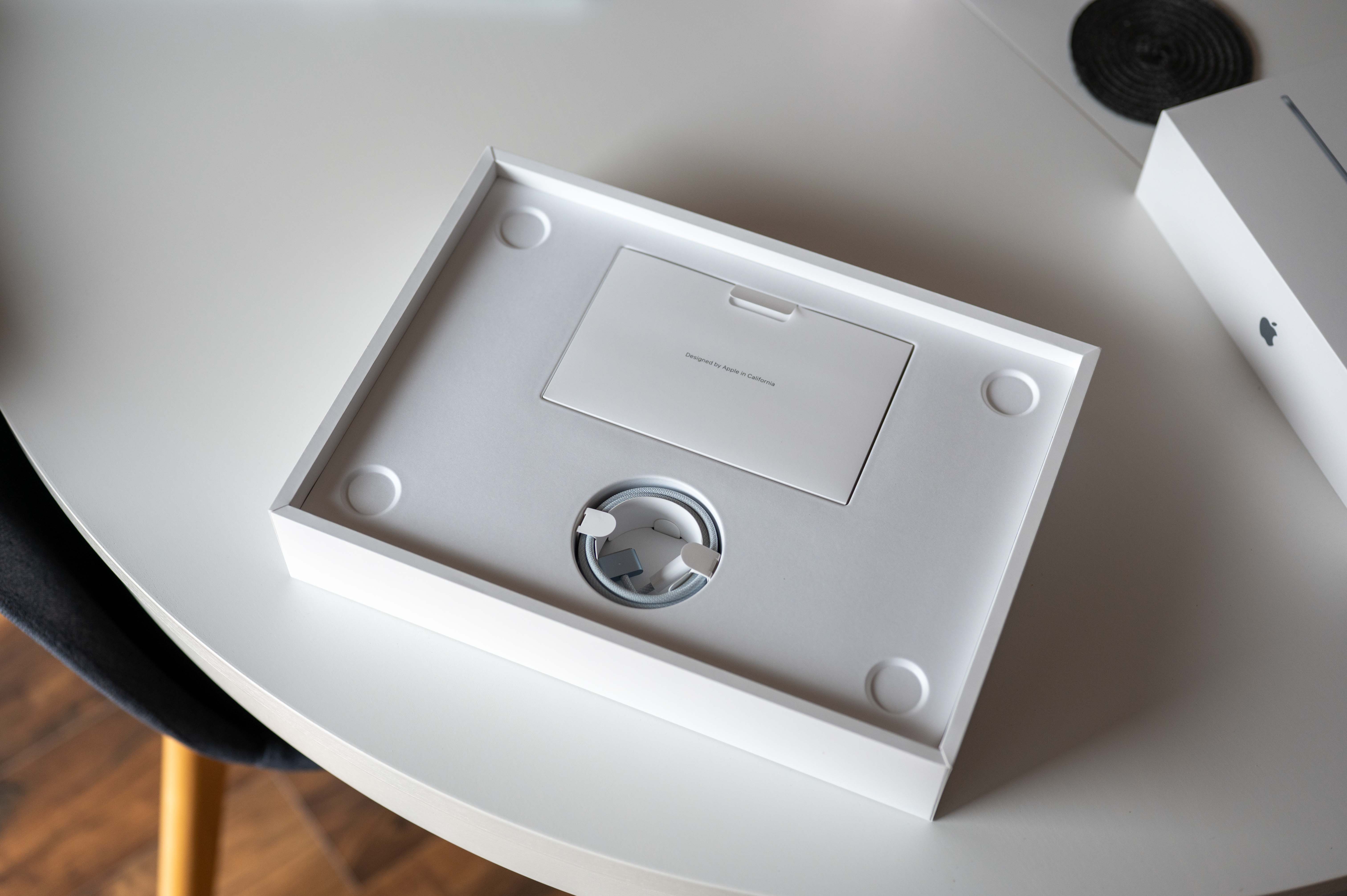 Apple se rozhodl neexperimentovat a nový MacBook Air vám tak dojde v krabici, která je typově prakticky stejná jako ty, ve kterých prodával i předešlé generace. Dorazí vám tedy papírový bílý box s vyobrazením stroje z boku na horním víku, logy a nápis po bocích a s nálepkou informující o konfiguraci na spodní straně. Ani uvnitř krabice na vás pak nečeká žádné překvapení. Po odklopení jejího horního víka se hned dostanete k MacBooku, pod kterým je ukryt šanon s manuály, napájecí adaptér a MagSafe kabel (samozřejmě v barvě stroje, po kterém jste stáhli).