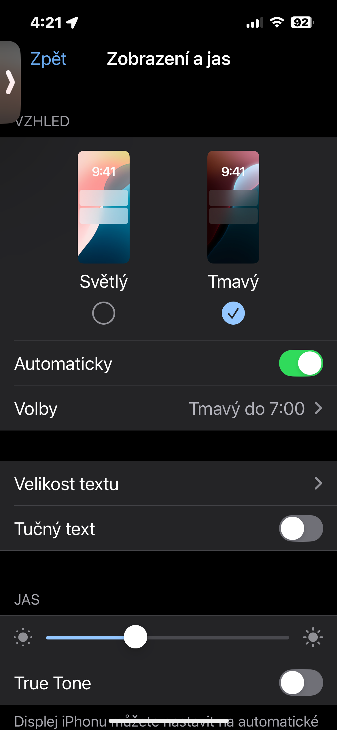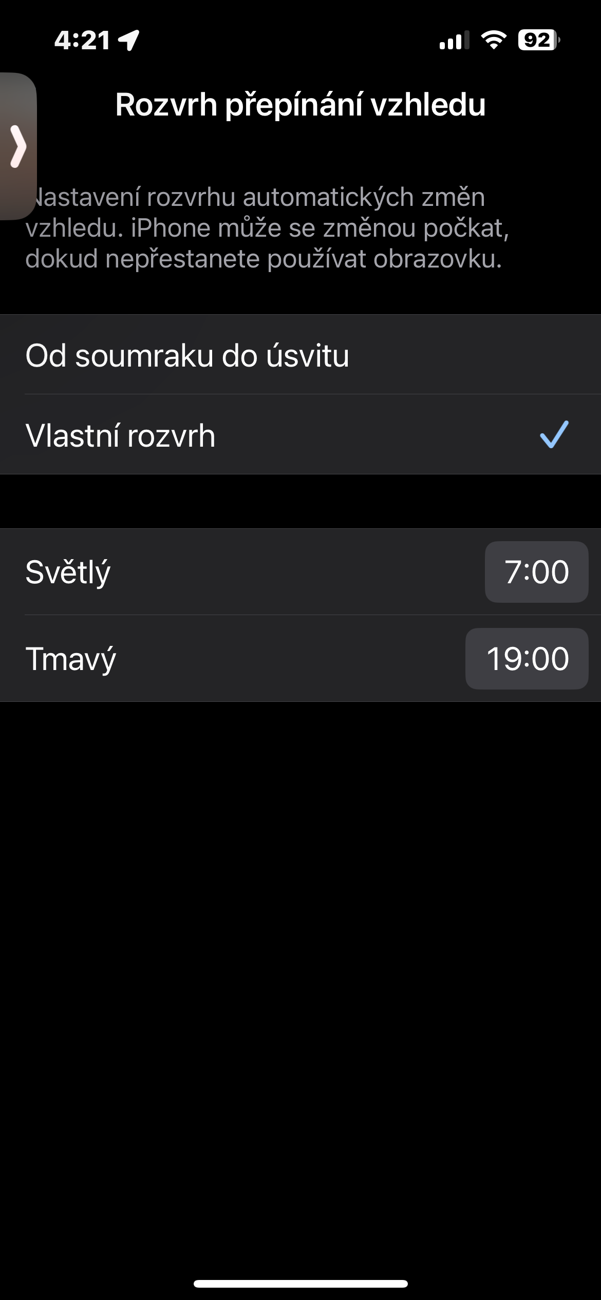 Přizpůsobení tmavého režimu
