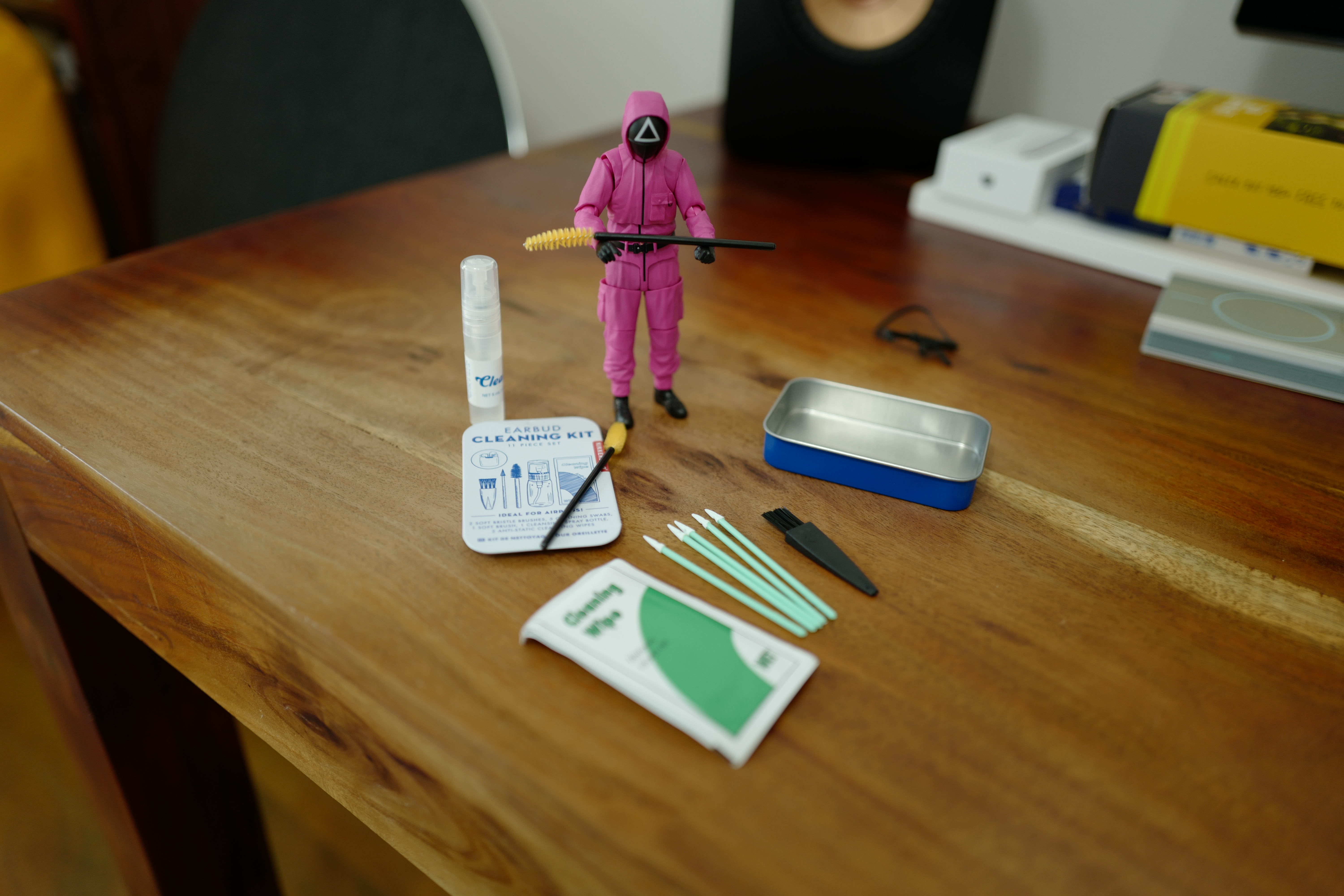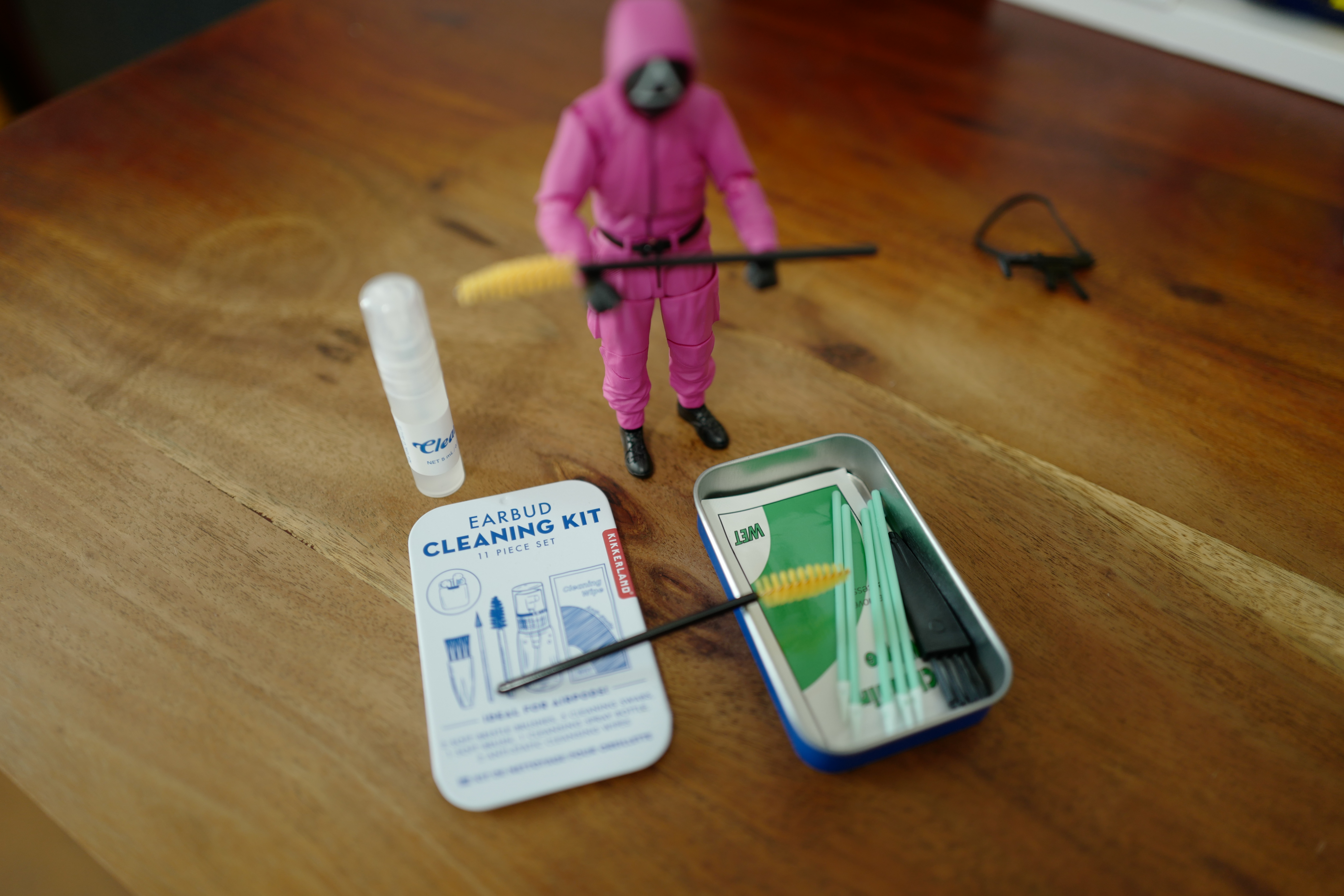 Kit obsahuje pár nástrojů na čištění, konkrétně se pak jedná o dva kartáčky na čištění otvorů, do kterých dáváte v pouzdře AirPods nabíjet, jeden kartáč proti prachu. dvojici vlhčených ubrousků s antistatickým efektem, pětici špičatých tyčinek a vodičku na čištění sluchátek. Zcela upřímně, vše, co najdete v tomto setu lze nahradit tím, že vezmete klasickou štětičku do uší, vatový tampónek nebo něco podobného a různě to zastřihnete nebo jinak upravíte. Pokud však chcete pěkný set v plechové krabičce, který se navíc prodává za 10$, tedy cenu jedné kávy, pak je to rozhodně zajímavá hračka. Nechci z tohoto setu dělat něco čím není, ale opravdu musím uznat, že se s ním AirPods čistí pohodlně a velmi efektivně. Na druhou stranu, jak jsem již zmínil, rozhodně to není jediná možnost, jak vyčistit AirPods.