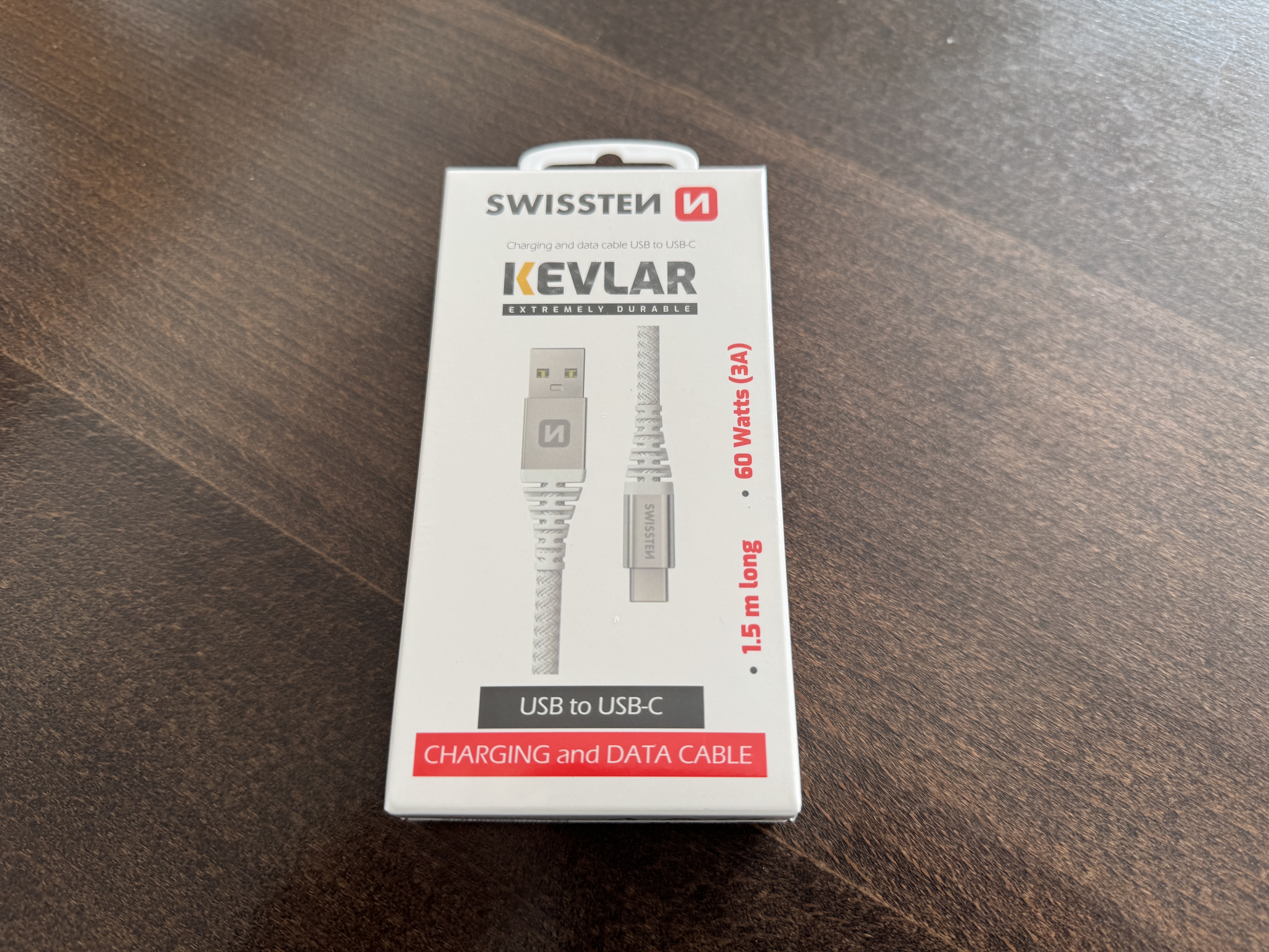 Jelikož se jedná „pouze o kabel“, nelze od balení čekat žádné zázraky. V malé bíločervené krabičce, která je pro Swissten typickou, naleznete pouze kabel USB-A na USB-C. Již na první pohled ale může být patrné, že nejde o obyčejný kabel. Tento konkrétní je totiž vyztužen kevlarovým vláknem. Jeho odolnost proti zalomení či jinému druhu poškození je skutečně vysoká. Výrobce navíc uvádí, lze dobíjet maximálním proudem 3A a lze ho využít i pro technologii rychlého dobíjení s výkonem až 60W. Délka je 1,5 metru.