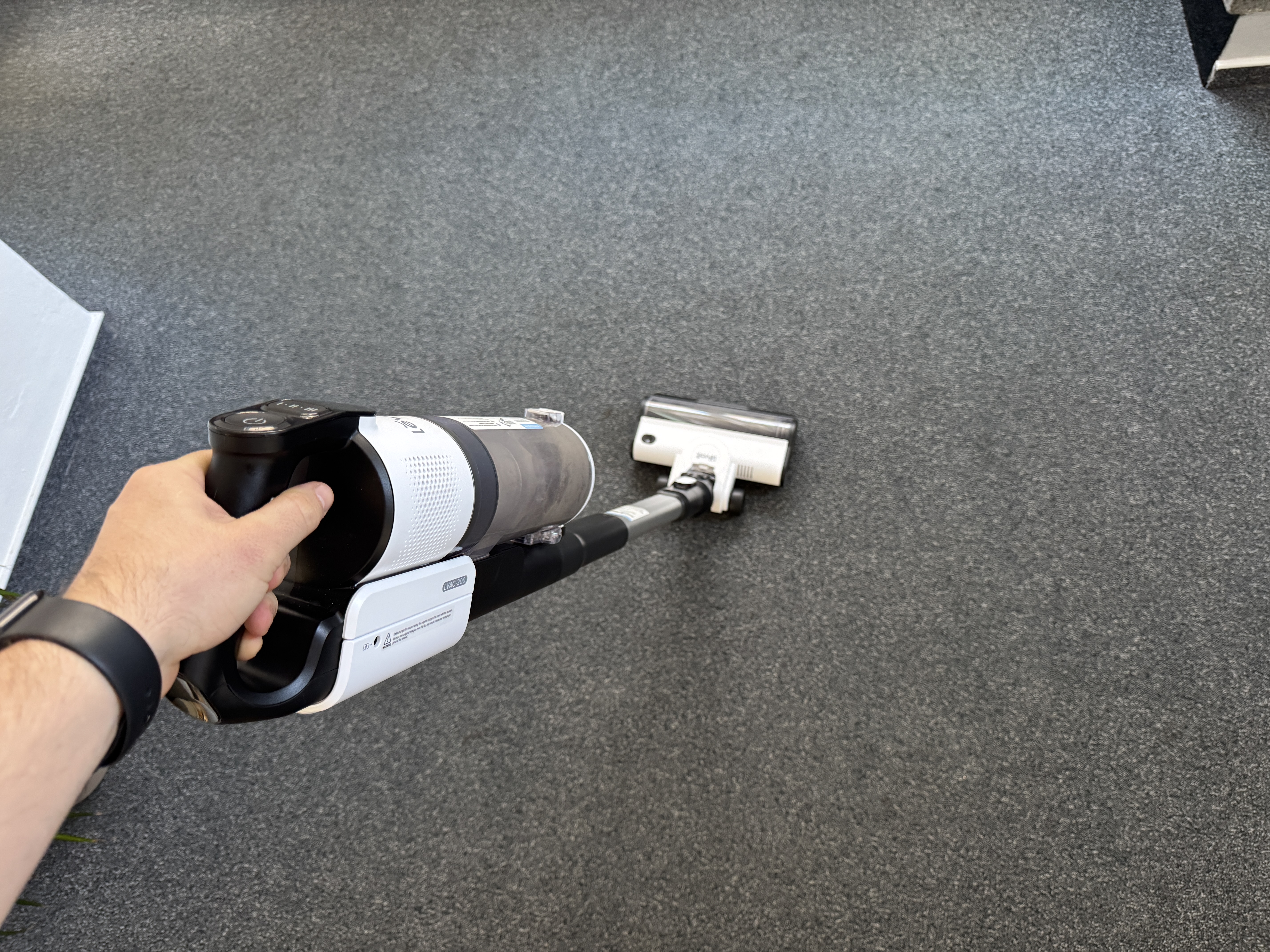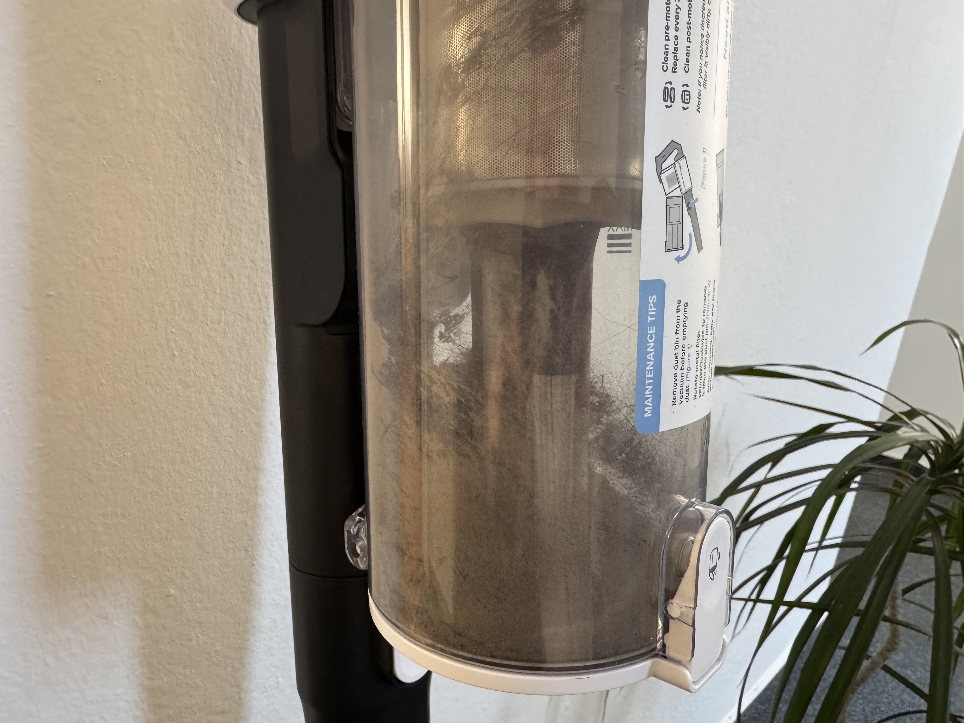Dobrý dojem na mě udělal také rotační kartáč s LED osvětlením, který oceníte hlavně při vysávání tmavších koutů nebo pod nábytkem. Za velkou výhodu považuji rovněž vyjímatelnou baterii. Tu můžete nabíjet přímo ve vysavači anebo zcela samostatně (třeba pokud ji chcete mít v zásuvce a vysavač pověsit mimo dosah). V balení najdete i držák na zeď, takže lze vysavač přehledně „zaparkovat“, aniž by zabíral místo na podlaze nebo byste jej někde museli opírat.