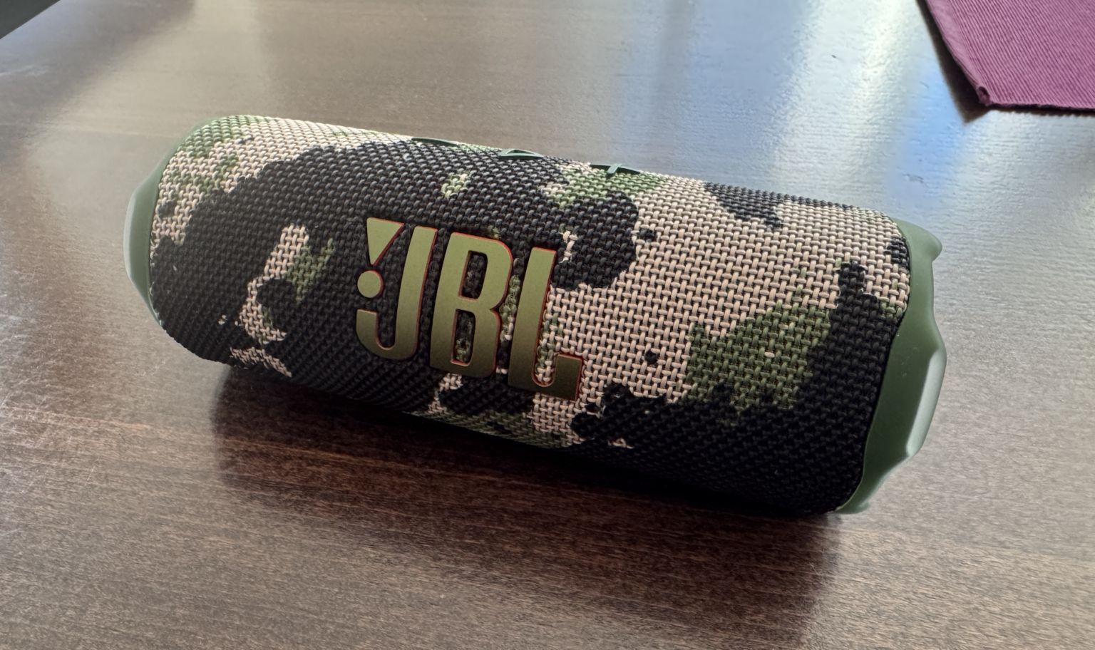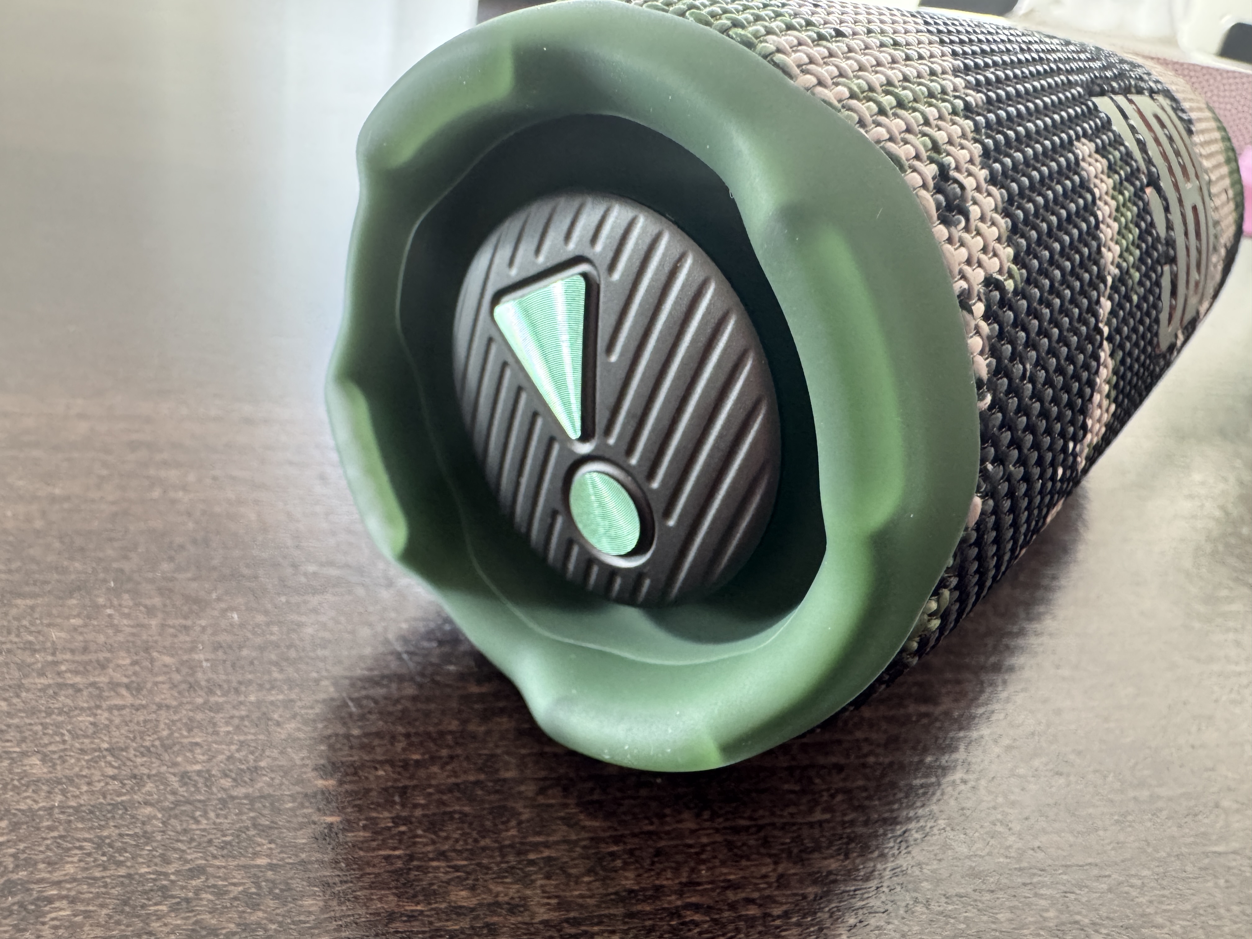 Už na první pohled je patrné, že JBL Flip 7 zůstává věrný oblíbenému válcovitému tvaru, na který jsme u této řady zvyklí. Squad (kamuflážové) provedení vypadá velmi stylově a zaujme především ty, kdo chtějí něco neotřelého a zároveň vhodného do přírody. Povrchová tkanina je recyklovaná a působí bytelným dojmem, což doplňuje pogumované lemování po stranách. Právě to chrání reproduktor při pádech a zajišťuje vodotěsnost i prachotěsnost odpovídající třídě IP68. JBL kromě standardní voděodolnosti přidal i robustnější ochranu proti nárazům, díky níž si dle výrobce reproduktor poradí s pádem z výšky až jednoho metru na beton. Pochopitelně jde ale o vlastnost, kterou zkoušet nehodlám.