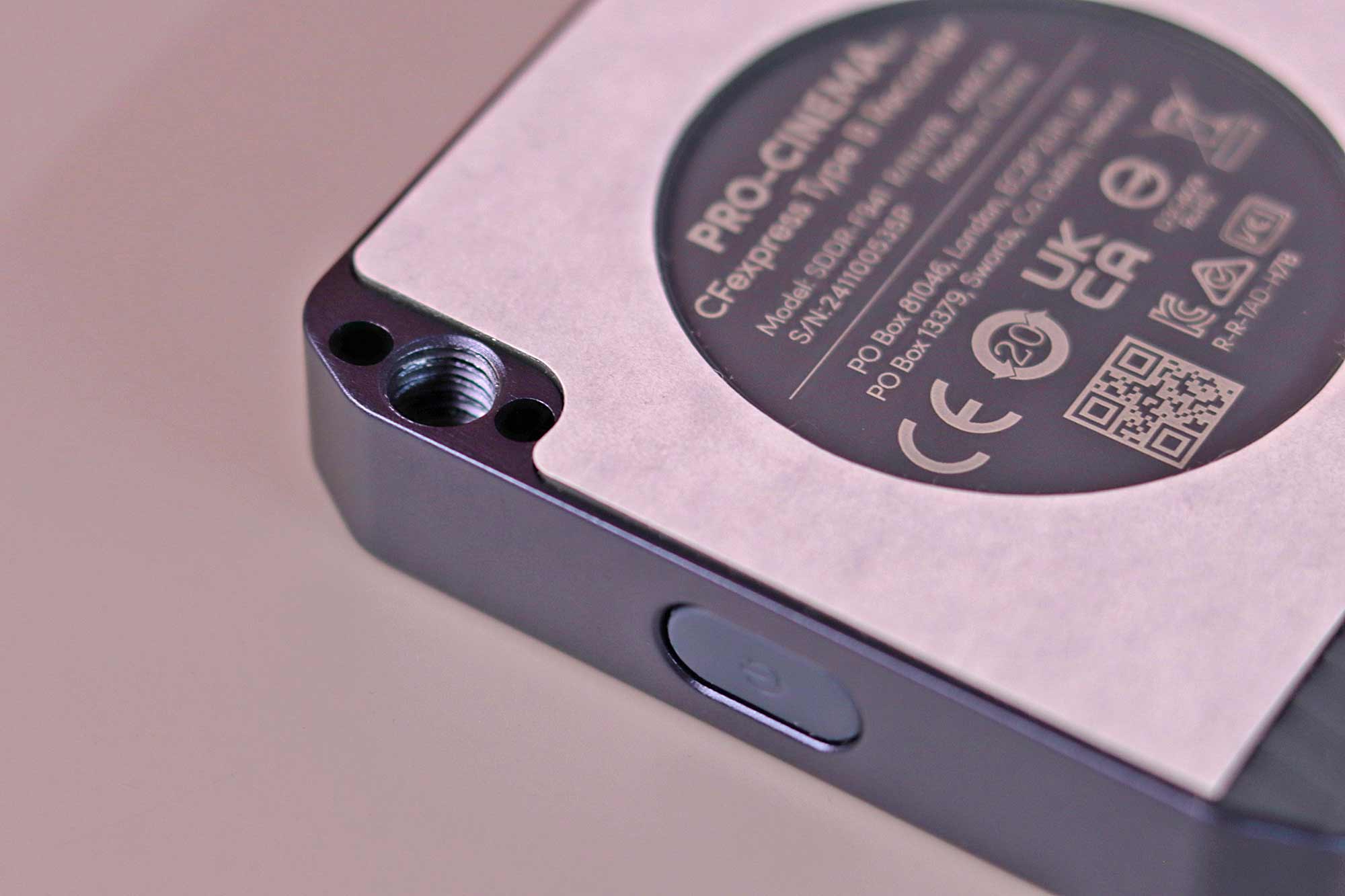 Pro profesionální filmaře je důležitá také možnost integrace do stávajících kamerových sestav. SanDisk PRO-CINEMA CFexpress Type B je kompatibilní s držákem ARRI ¼“-20, což umožňuje snadné začlenění do profesionálních rigů a usnadňuje práci na place. Je to vlastně standardní stativový závit, do kterého jde upevnit, takže nemusíte dokupovat speciální klešťové držáky, ale vystačíte si s redukcí nebo třeba s 1/4 oboustranným závitem.