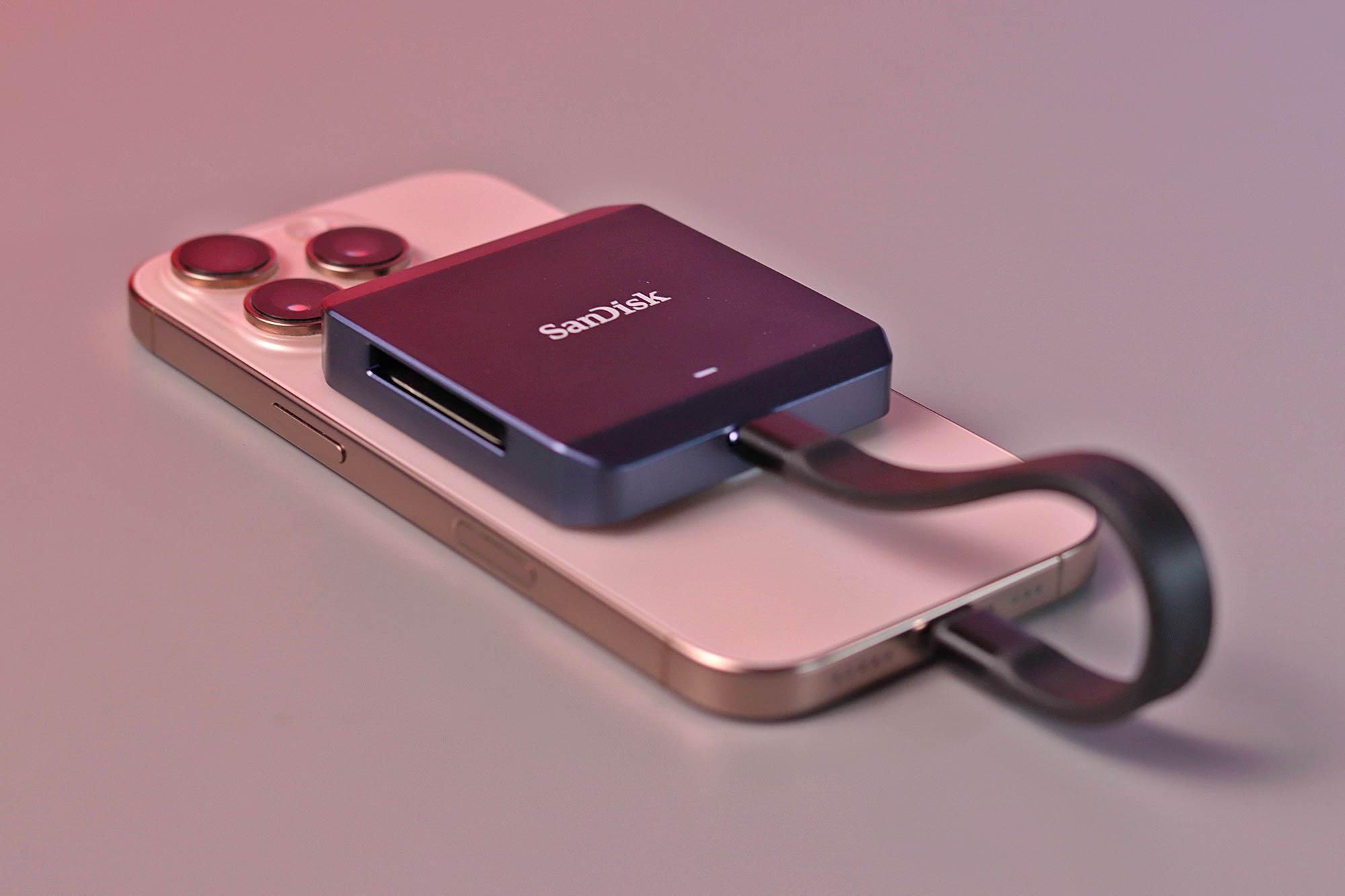 SanDisk PRO-CINEMA čtečka karet CFexpress Type B je ideální zařízení pro nahrávání ProRes videa na iPhone. Má i MagSafe a nabízí super rychlé přenosy.