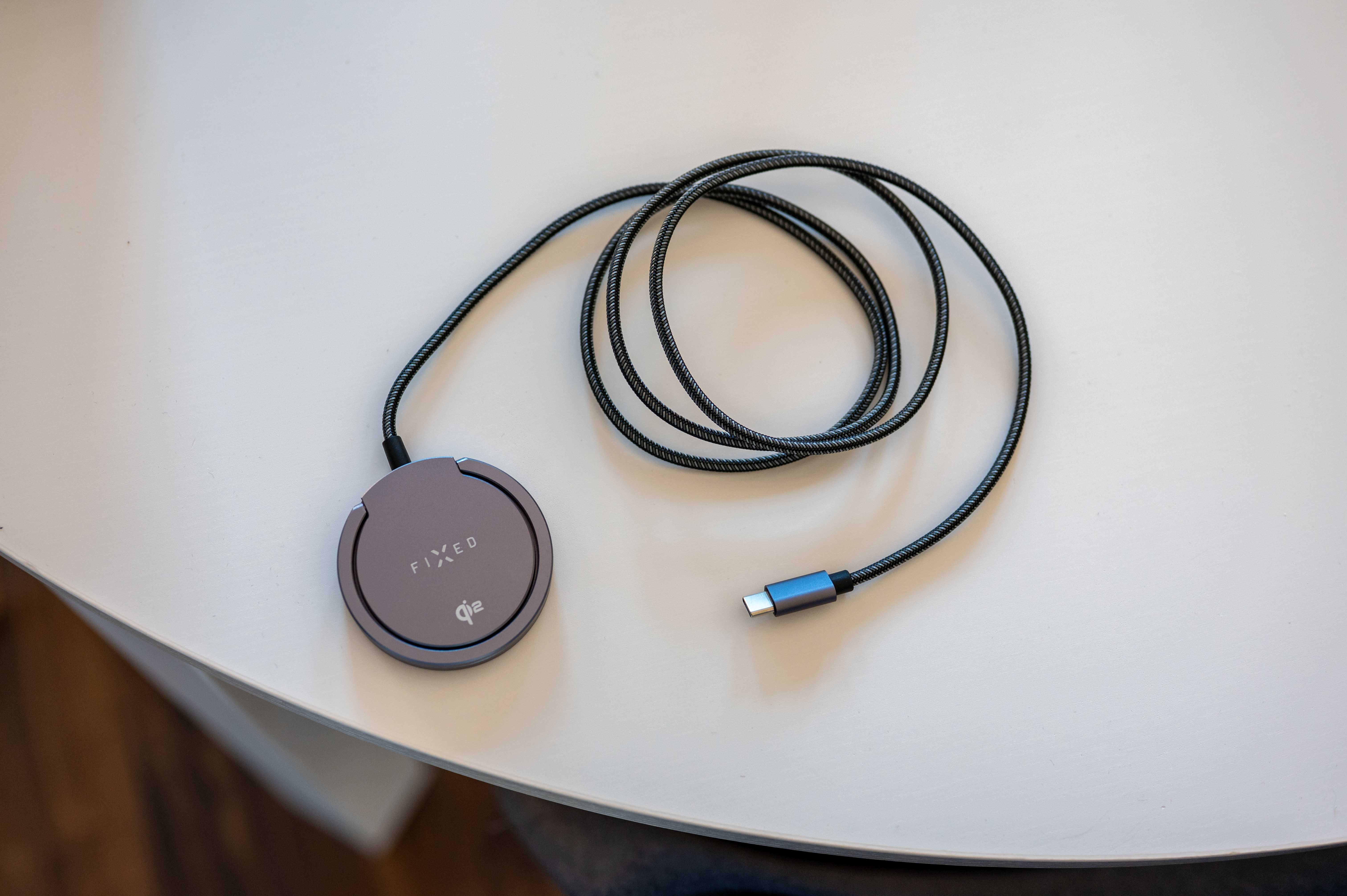 Z hlediska parametrů nabídne FIXED MagPad Pro výkon až 15 W, což je dvojnásobek oproti běžným 7,5W bezdrátovým nabíječkám. Plně totiž využívá možnosti nové standardizované technologie Qi2, a díky zpětné kompatibilitě zvládne nabít i starší zařízení s podporou Qi1. Napájení probíhá přes přibalený 1,2metrový USB-C kabel s odolným nylonovým úpletem a hliníkovou koncovkou. Nabíječka podporuje vstupní napětí 5V až 12V a výstupní výkon od 5 do 15 W. Se svou hmotností pouhých 70 gramů a tloušťkou 9,2 mm je navíc ideálně kompaktní, takže se snadno přenáší a nepřekáží ani na pracovním stole, ani na nočním stolku.