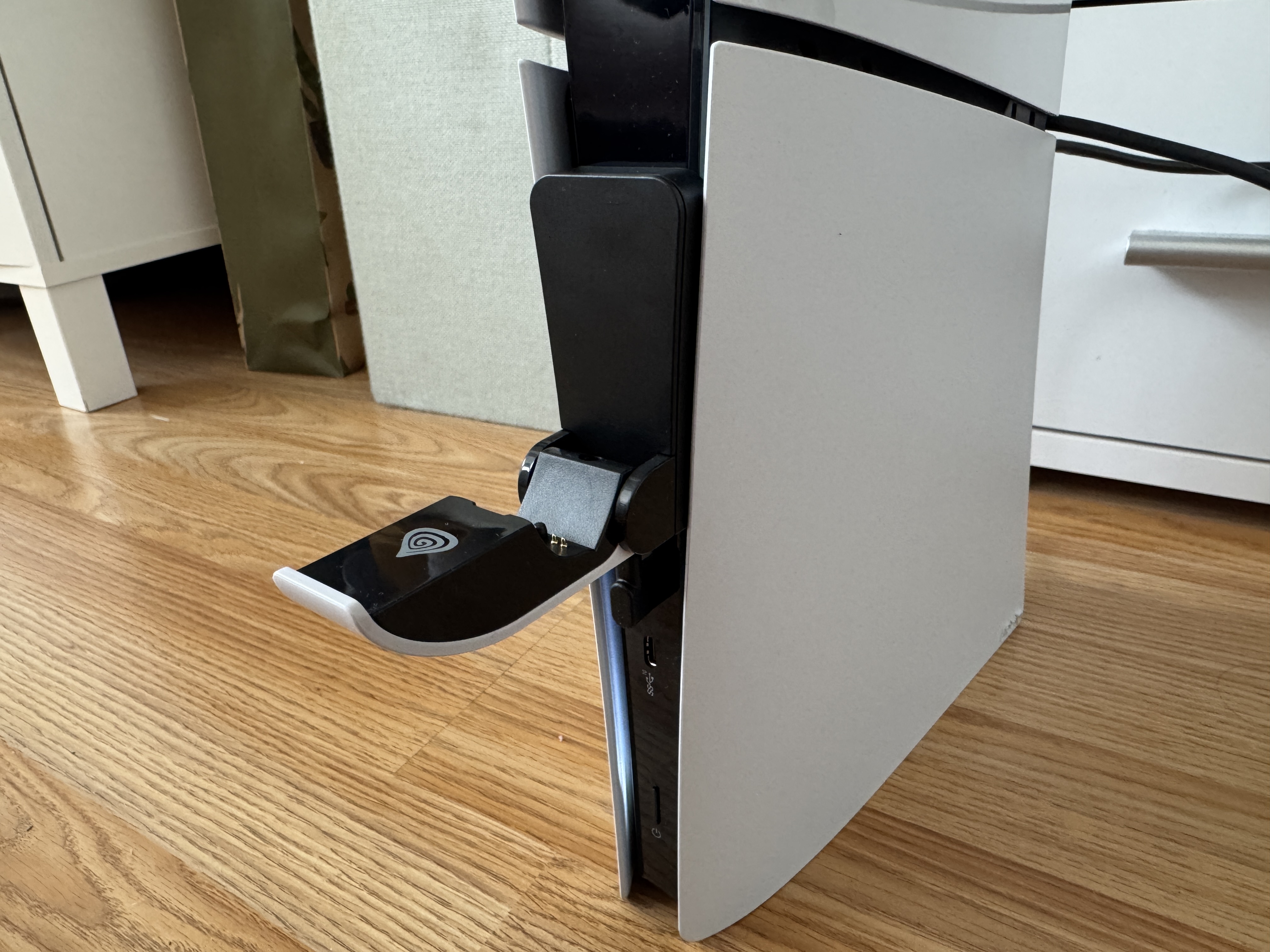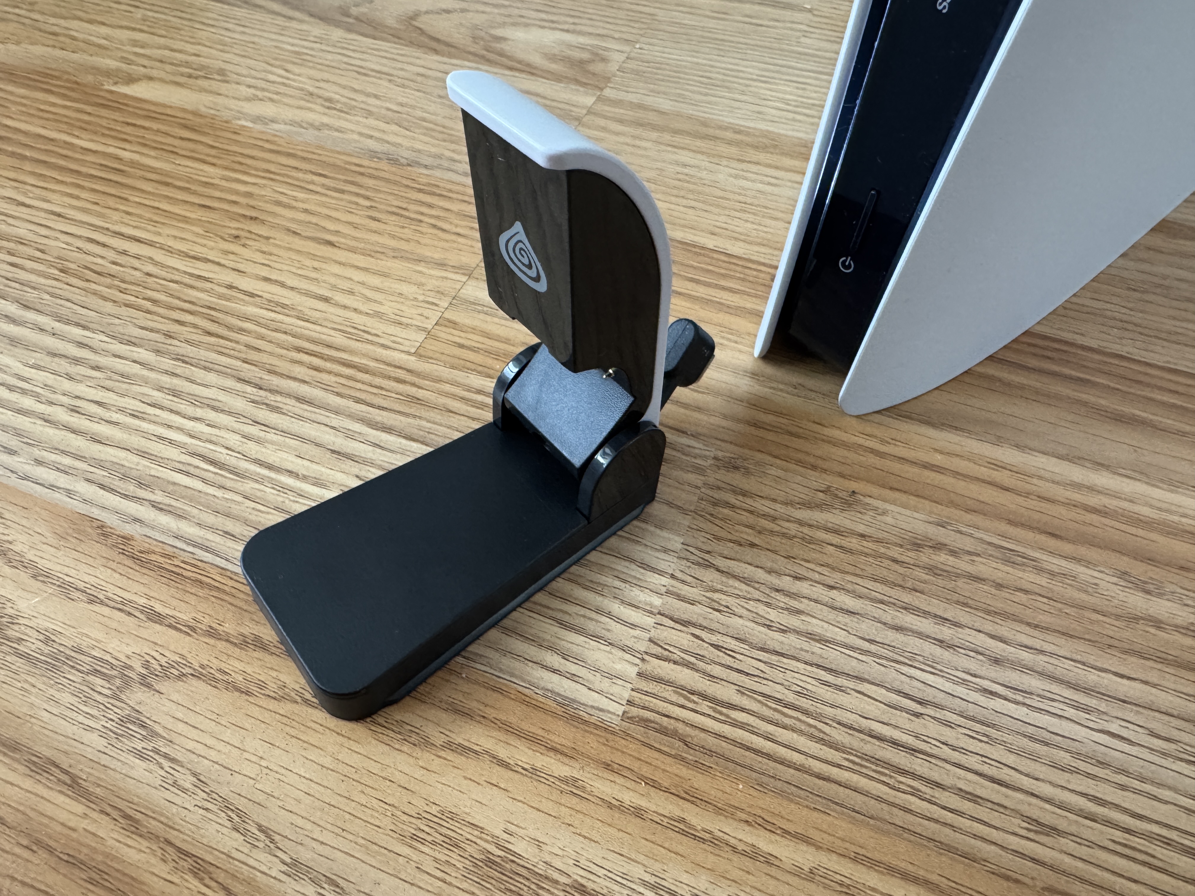 Už na první pohled vás nabíječka zaujme minimalistickým černo-bílým provedením, které ladí s estetikou PS5 Slim. Její skládací konstrukce je promyšlená tak, aby dokázala kopírovat linii konzole, a zároveň nezabírala zbytečně prostor ve chvílích, kdy nabíječku zrovna nepoužíváte. Stačí jediný pohyb a Tin 305 se „schová“ přímo na přední straně konzole. Jemné logo značky Genesis decentně zdůrazňuje, že jde o herní příslušenství, aniž by design působil rušivým dojmem.