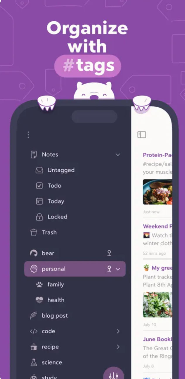 Pokud hledáte elegantní rozhraní a minimalistické funkce, Bear je pro vás ideální volbou. Aplikace umožňuje vytvářet textové poznámky, seznamy a přidávat obrázky v čistém a intuitivním designu. Poznámky lze organizovat pomocí hashtagů a snadno je filtrovat. Bear nabízí synchronizaci mezi zařízeními a také podporuje šifrování poznámek pro vyšší úroveň zabezpečení.