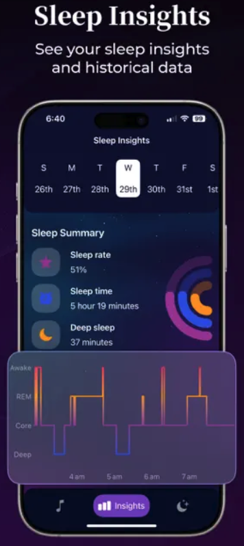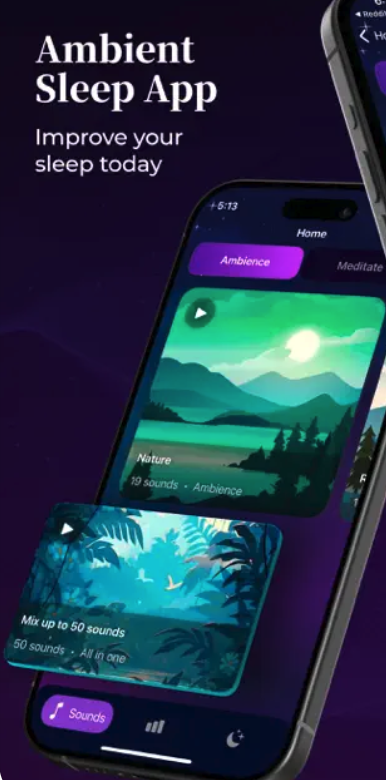 Ambient: Sleep Sounds je komplexní aplikace pro lepší spánek, která nabízí širokou škálu uklidňujících zvuků, meditací a technik navržených tak, aby podpořily kvalitní a hluboký odpočinek. Uživatelé mají na výběr z více než 100 zvukových stop, od přírodních šumů až po hudbu pro hluboký spánek. Součástí aplikace jsou také vedené meditace a dechová cvičení, které pomáhají snižovat stres a napětí před usnutím. Funkce snového deníku umožňuje zaznamenávat a reflektovat sny, čímž podporuje lepší povědomí o spánku. Ambient navíc umožňuje přizpůsobit si prostředí podle individuálních potřeb, a vytvořit si tak ideální podmínky pro klidnou noc. Tato aplikace je spolehlivým společníkem pro každého, kdo chce usínat snadněji a probouzet se svěží a odpočatý.