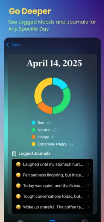 Soul Journal je osobní aplikace pro sledování nálad a vedení deníku, která uživatelům pomáhá lépe porozumět svým emocím v průběhu času. Nabízí jednoduchý způsob, jak si každý den zaznamenat aktuální náladu pomocí pěti úrovní, doplněný o možnost připojit osobní poznámky. Uživatelé mohou sledovat své emoční vzorce díky přehlednému grafickému zobrazení ve formě koláčového diagramu. Kromě sledování nálad nabízí Soul Journal také prostor pro každodenní psaní deníkových záznamů a motivuje uživatele k pravidelnosti prostřednictvím sledování série zaznamenaných dnů. Díky kombinaci jednoduchého uživatelského rozhraní a promyšlených funkcí se Soul Journal stává efektivním nástrojem pro každodenní sebereflexi a posilování emoční pohody.