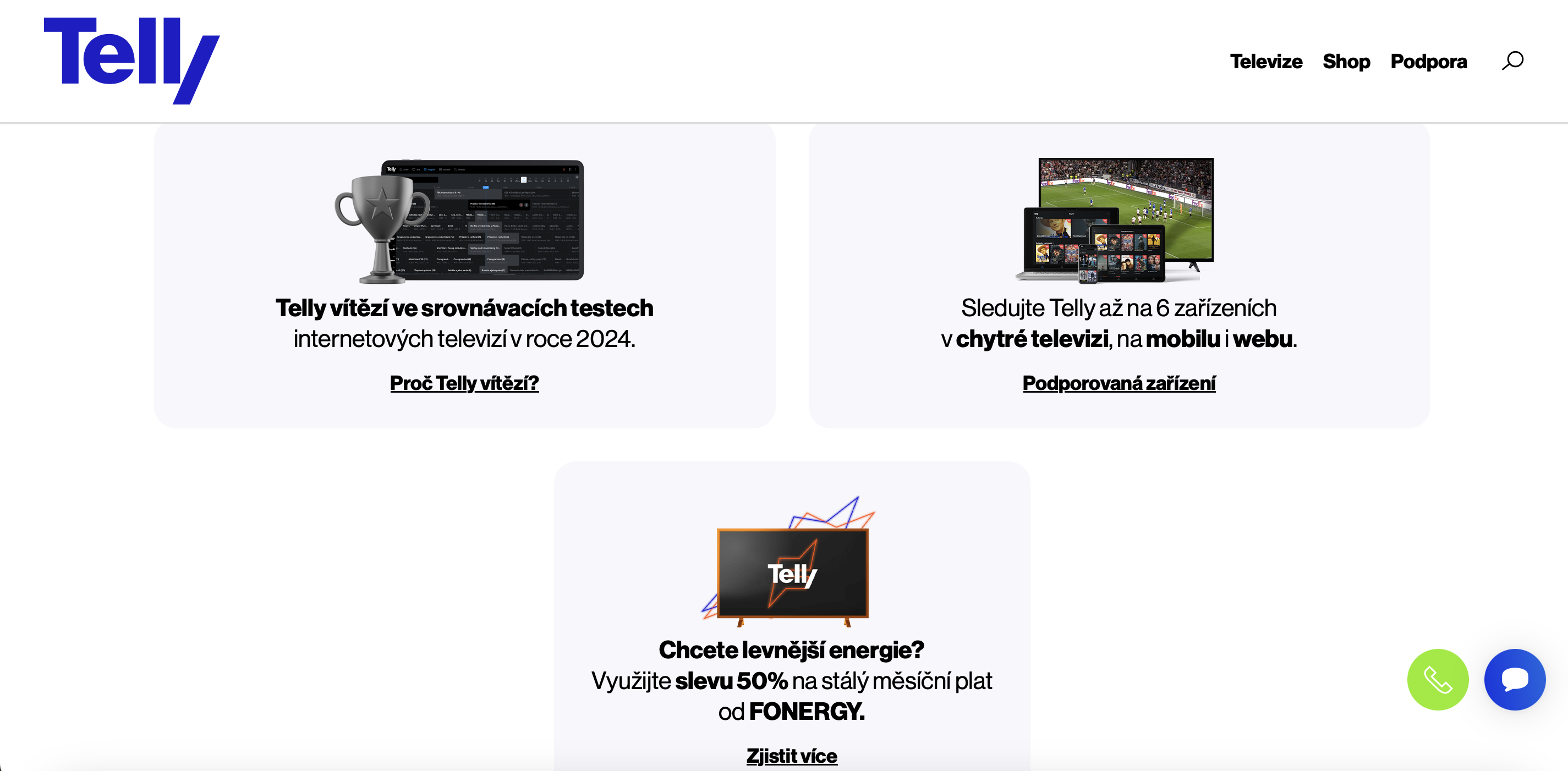 Pokud hledáte televizi přes internet, která přináší chytré funkce, pestrou nabídku kanálů a možnost ji sledovat kdekoli, je Telly jednou z nejlepších variant. Díky zpětnému zhlédnutí, nahrávání a podpoře mnoha zařízení jste pánem svého televizního času. Nabídka stovek filmů a volitelný HBO balíček pak rozšiřují obsahovou knihovnu do úctyhodné šíře. Proč si složitě vybírat, když internetová televize Telly zvládne vše na jedničku? Po vyzkoušení už vás možná žádná jiná TV služba neosloví.