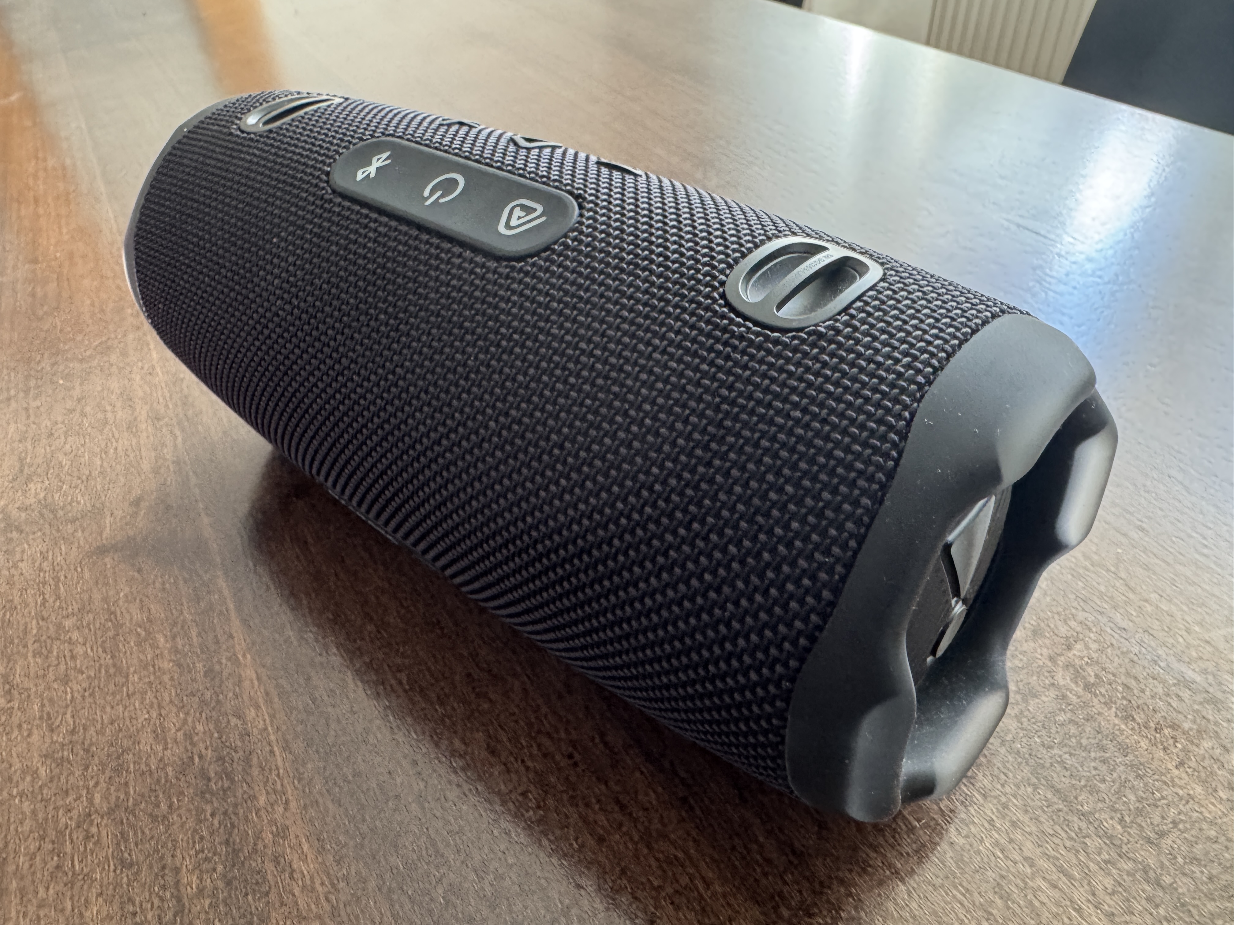 Uvnitř těla pracuje 52 mm woofer (30 W RMS) a 20 mm tweeter (10 W), doplněné o dva 65 × 44 mm pasivní radiátory. Zásluhou účinnějšího zesilovače PMEQ dosahuje na skvělý výkon 45 W. Horní gumová lišta ukrývá tlačítka: napájení, Bluetooth, plus/minus, Play/Pause (dvojitým stiskem přeskočí track) a PartyBoost/Auracast. Zkrátka a dobře na repráku budete moct ovládat vše, co byste čekali. U gumové krytky najdete USB‑C (nabíjení in/out) a úzkou LED lištu indikující stav nabití. 3,5 mm jack zde nenajdete podobně jako u minulé generace.
