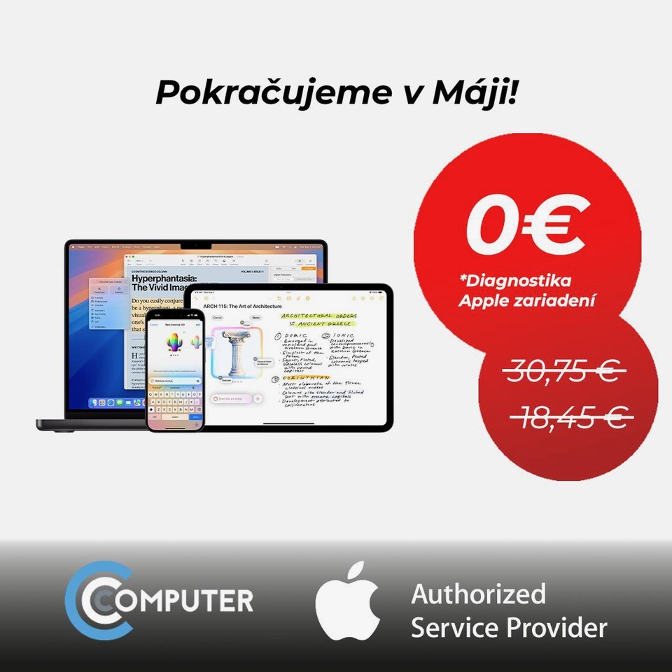 Komerční sdělení: Pokud máte iPhone, iPad, Mac nebo jakékoli jiné Apple zařízení a chcete si být jisti jeho stavem, máme pro vás skvělou zprávu! Po celý měsíc květen nabízí servis C.C.Computer v Bratislavě bezplatnou diagnostiku všech Apple zařízení. Ať už váš přístroj vykazuje potíže, nebo chcete jen zkontrolovat jeho kondici, nyní máte možnost získat odborné posouzení zcela zdarma.