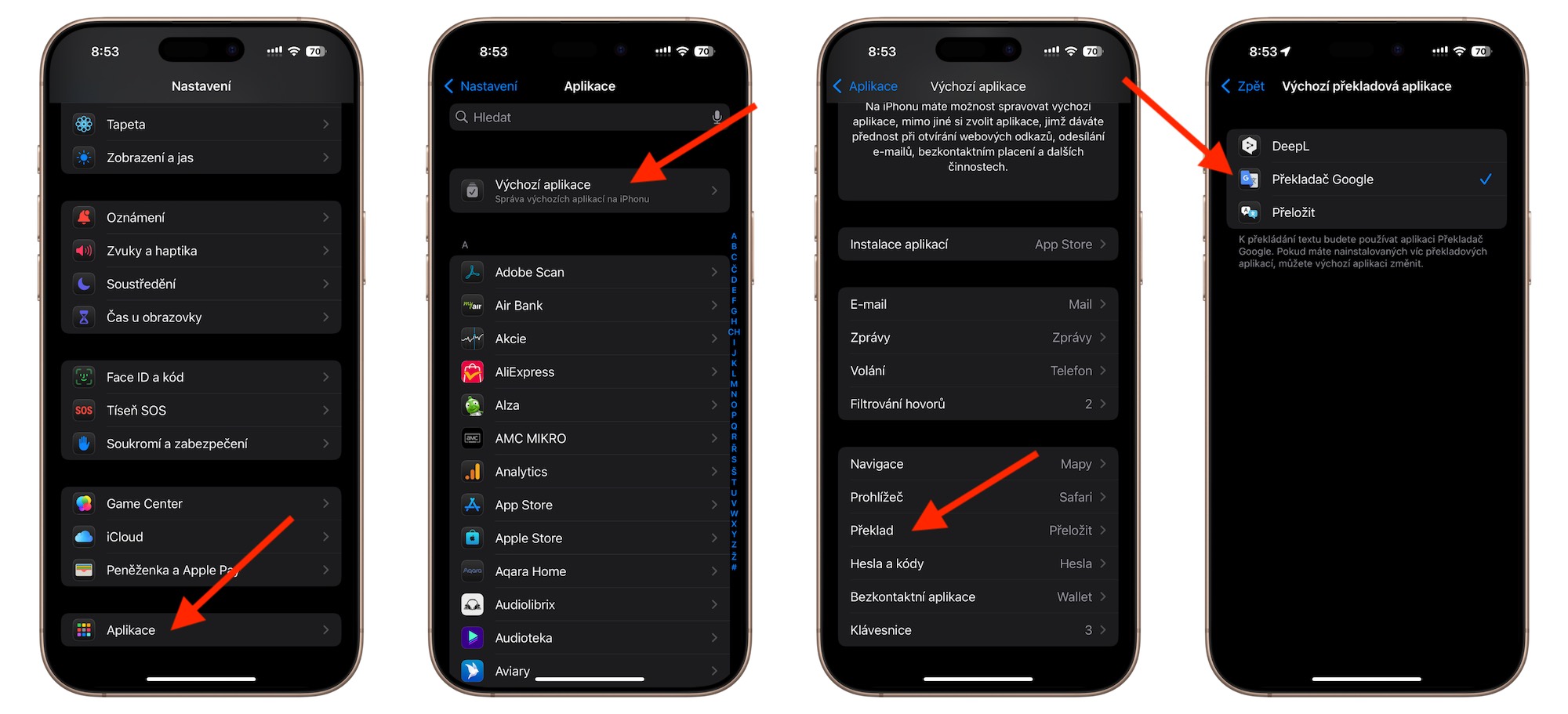 Apple s příchodem iOS 18.4 a iPadOS 18.4 rozšířil možnosti přizpůsobení systému – a nově umožňuje uživatelům nastavit si vlastní výchozí aplikaci pro překlady. Google této novinky využil a nyní je možné zvolit Google Překladač jako výchozí překladatelskou aplikaci místo té od Apple.