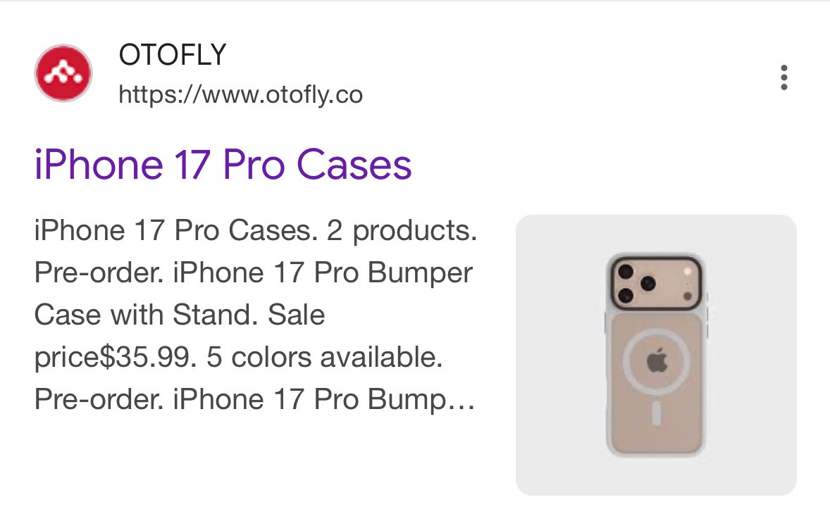 Otofly je americká značka specializující se na příslušenství pro iPhony, která byla založena v roce 2015. Značka je známá především svými silikonovými pouzdry, která kombinují elegantní design s vysokou ochranou zařízení. Otofly nabízí širokou škálu barev a stylů, včetně kompatibility s technologií MagSafe, čímž uspokojuje různé estetické preference uživatelů. Díky důrazu na kvalitu a zákaznický servis si Otofly vybudovala loajální zákaznickou základnu. Její produkty jsou dostupné ve více než 50 zemích, včetně České republiky, a lze je zakoupit například prostřednictvím oficiálního e-shopu nebo na Amazonu. Vzhledem ke svému silnému postavení na trhu je tak jasné, že Otofly musí na přípravě krytů pro blížící se iPhony nejenže pracovat, ale se svými přípravami už i finišovat, aby byl výrobce schopen kryty dodat ideálně ještě před odhalením či startem prodejů novinek. Je proto jasné, že musí využít zdroje z dodavatelského řetězce Applu pro získání detailních informací o chystaných iPhonech, na jejichž základě následně dokáže své kryty připravit. A jelikož jsou evidentně již hotové a výrobce si teď začal budovat v Google odkazy kvůli SEO síle, začaly kryty již vyskakovat.
