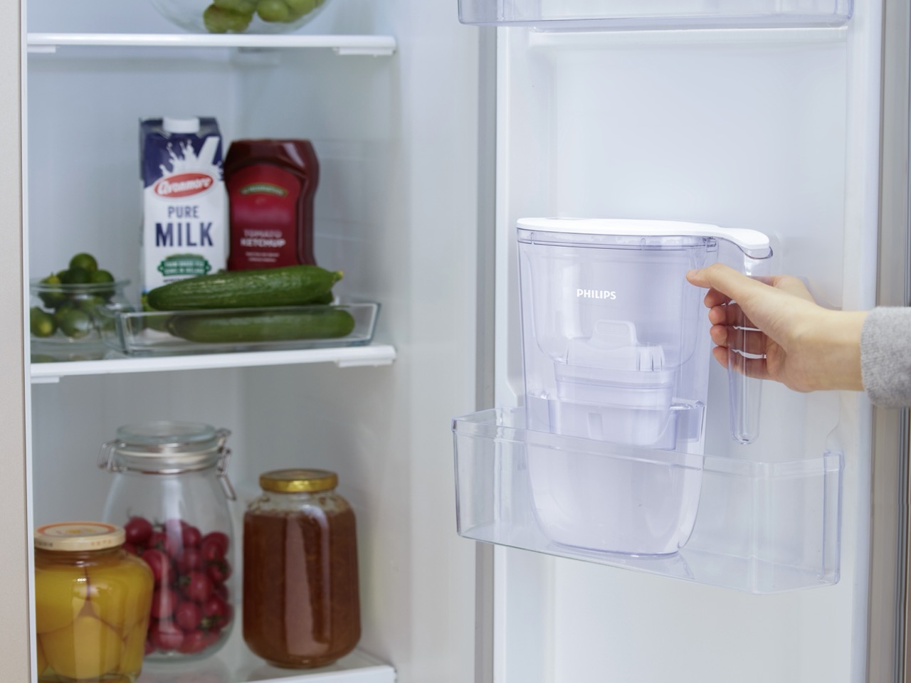Filtrační konvici můžete postavit na linku, nebo ji mít uskladněnou v lednici. Model Philips AWP2953 nabízí velkorysý objem 3,4 litru, takže vodu nebudete muset dopouštět tak často. Vejde se pohodlně do dveří lednice, díky odklápěcímu víku ji snadno napustíte jednou rukou a sama si ohlídá, až bude třeba vyměnit filtr. Což se děje zhruba jednou za měsíc.