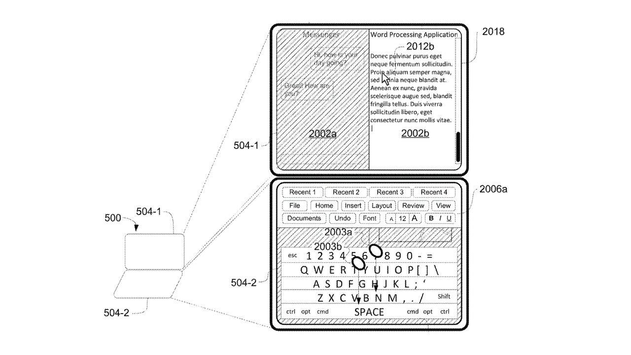 Podle detailů patentu Apple pracuje na systému, který umožní, aby dolní obrazovka skládacího zařízení sloužila jako plnohodnotná softwarová klávesnice, ale také jako nástroj pro kreslení či ovládání gesty. Při otevření zařízení tak může uživatel pracovat stejně pohodlně jako s MacBookem, ale zároveň má k dispozici variabilní pracovní plochu.