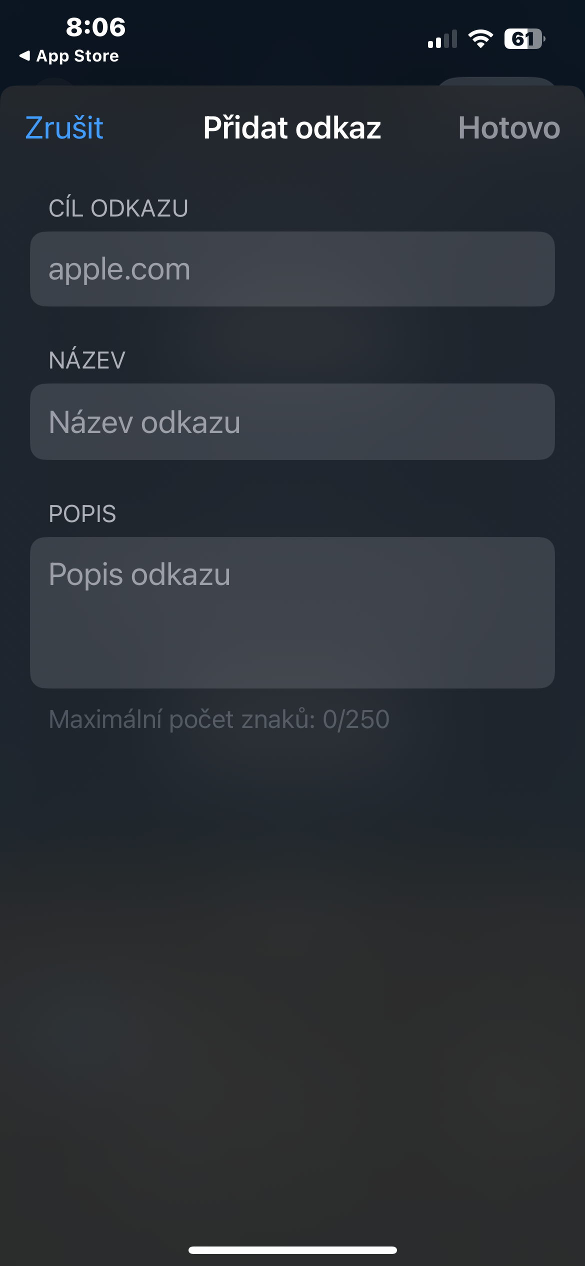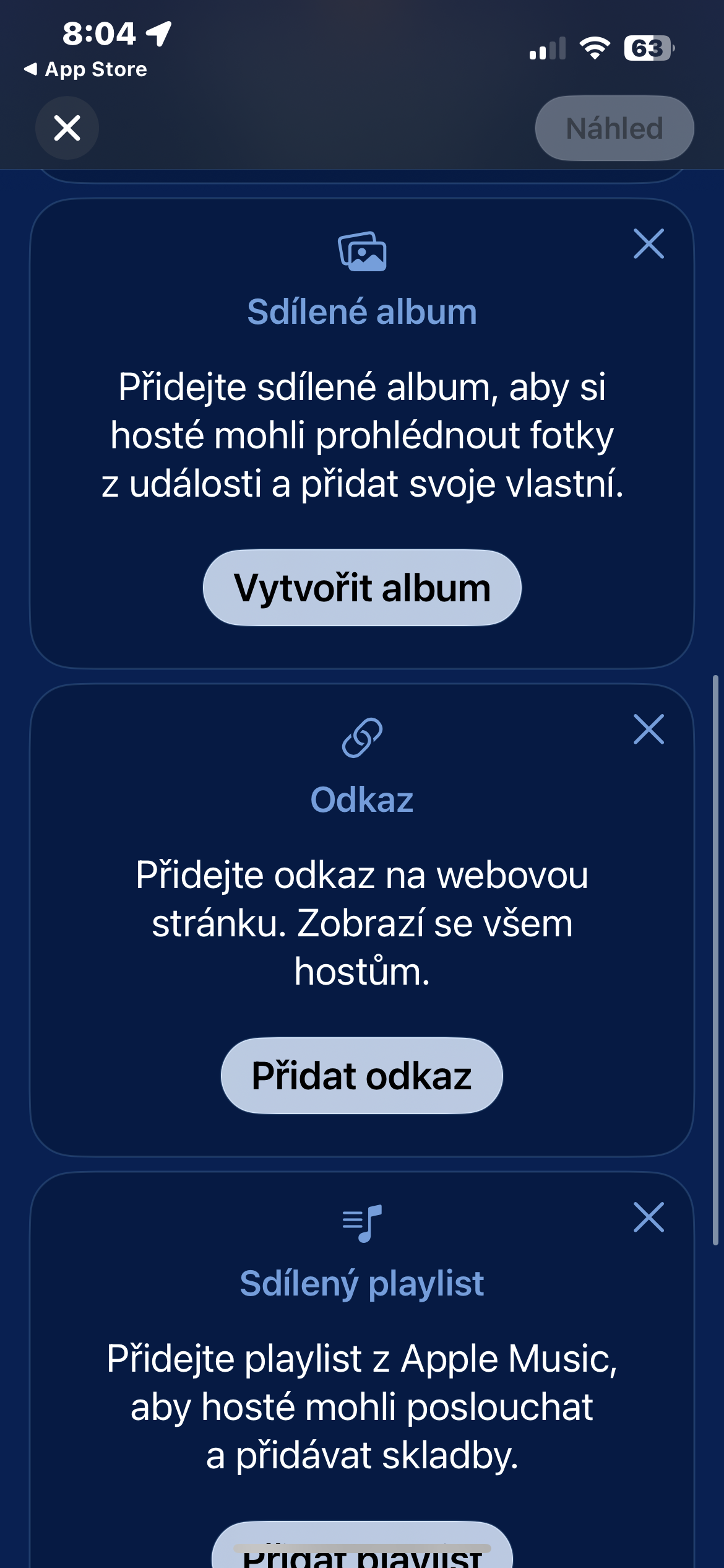 Nová funkce se nachází v sekci Dlaždice, která byla do aplikace přidána právě s touto aktualizací. Pomocí tlačítka „Přidat dlaždici“ můžete vložit URL adresu, název odkazu a jeho popis. Sekci Dlaždice najdete zcela dole. Apple uvádí, že odkazy mohou sloužit k celé řadě účelů – například k připojení seznamu dárků, plánování společného výletu nebo rozdělení úkolů na rodinné oslavě formou „kdo co přinese“. Vzhledem k tomu, že odkazy nejsou nijak omezené, můžete do pozvánky vložit prakticky jakýkoliv web podle potřeby.