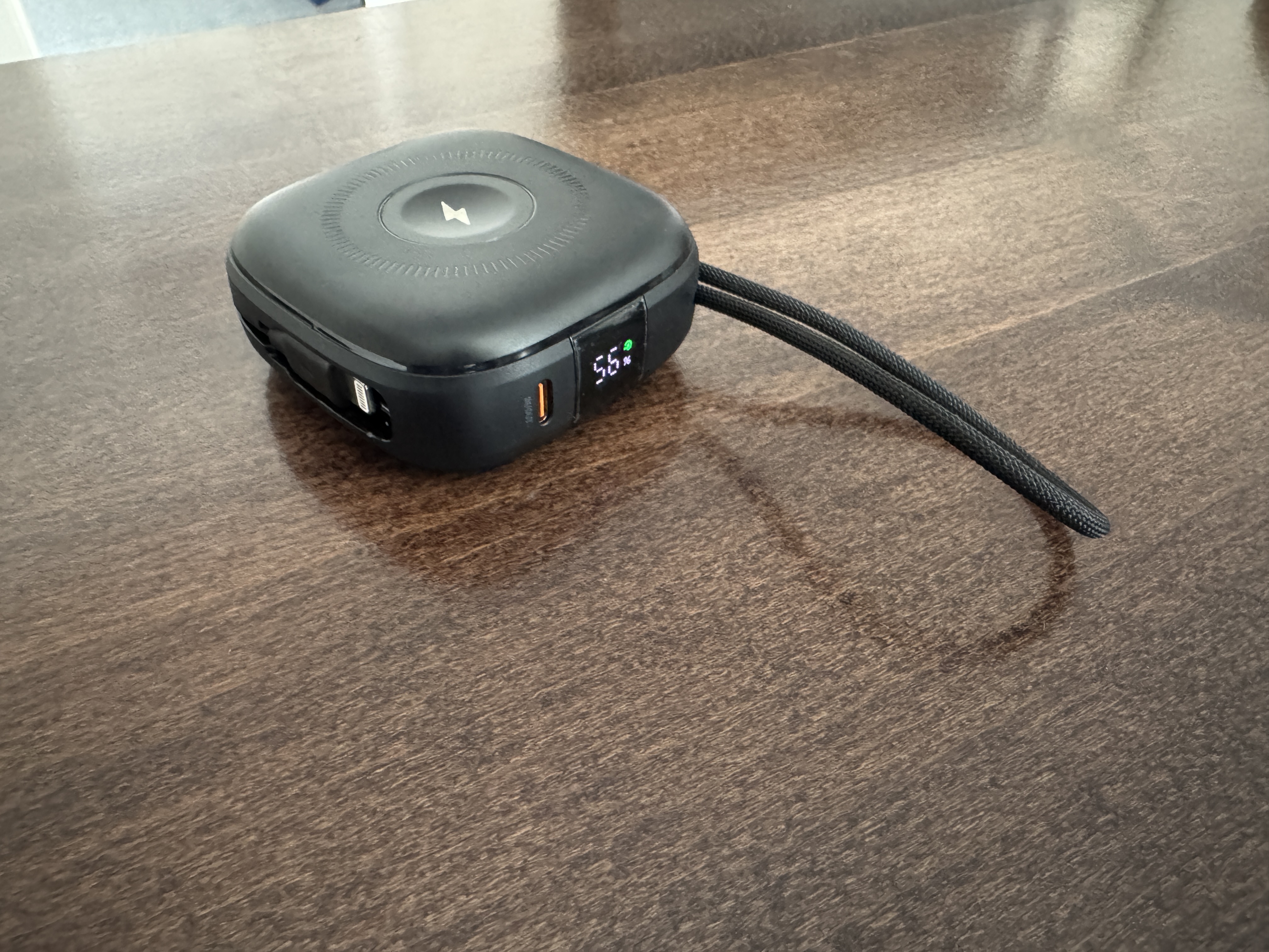 Powerbanka má kapacitu 10000 mAh. Zvládne tedy nabít můj iPhone 15 Pro zhruba 3x. Poradí si i s nabitím MacBooku Air. Ovšem kvůli výkonu 20 W počítejte s tím, že powerbanka spíše bude pouze udržovat aktuální stav baterky. Největším lákadlem jsou samozřejmě integrované kabely, kdy zapasovaný USB-C dokonce poslouží i jako poutko. Kabely jsou opletené, takže se můžete spolehnout i na jejich delší životnost. iPhone či sluchátka nabijete i bezdrátově, ovšem u iPhonu musíte počítat s maximálním výkonem 7,5 W. Powerbanka je natolik všestranná, že dodá energii i vašim Apple Watch. Pokud tedy někam míříte na víkend, stačí si vzít pouze tuto „kapesní powerbanku“. Pokud bude nabitá na max, nepotřebujete nic dalšího.