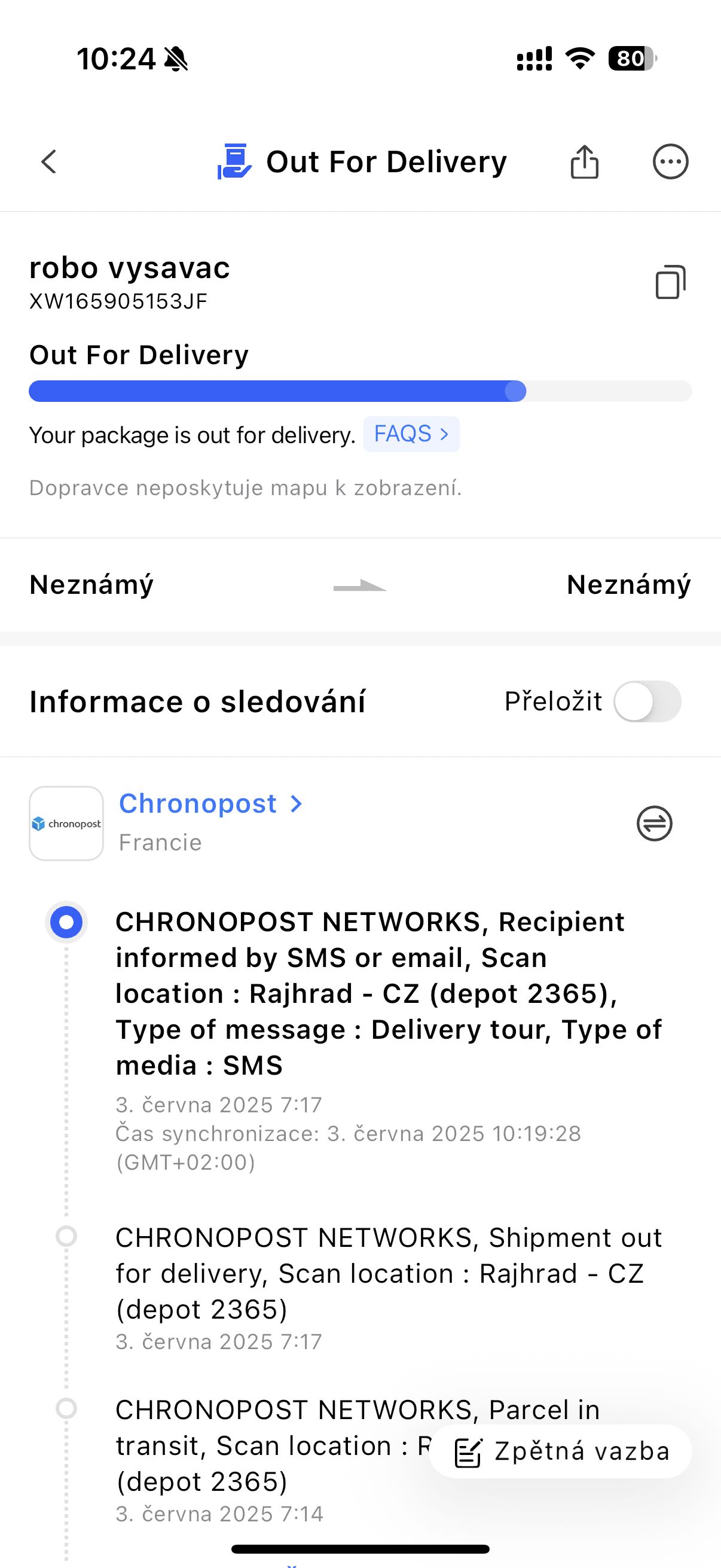 Platforma nese název 17Track a kromě webové verze je k dispozici i coby mobilní aplikace. Její princip je pak naprosto jednoduchý – stačí do ní vložit trackovací kód, který vám zaslal ať už eshop či dopravce a je hotovo. Platforma si následně sama identifikuje, kdo dopravu zajišťuje a v přehledném prostředí vám zobrazí všechny kroky, které jsou v rámci dané dopravy k dispozici. A protože se zrcadlí veškeré informace, které byste jinak našli i přímo na webu daného dopravce, ušetří vám aplikace právě tímto zrcadlením čas. Samozřejmostí jsou navíc aktualizace pohybu, díky čemuž člověk ví, že se k němu balíček blíží.