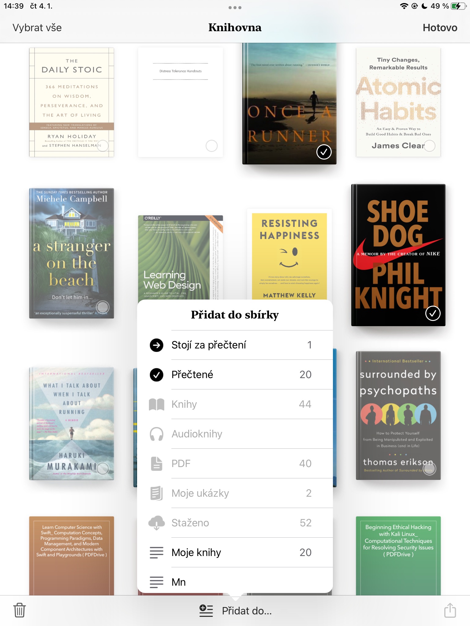 - Vyberte tituly, které chcete do sbírky zařadit, klepnutím na jejich obálky.
