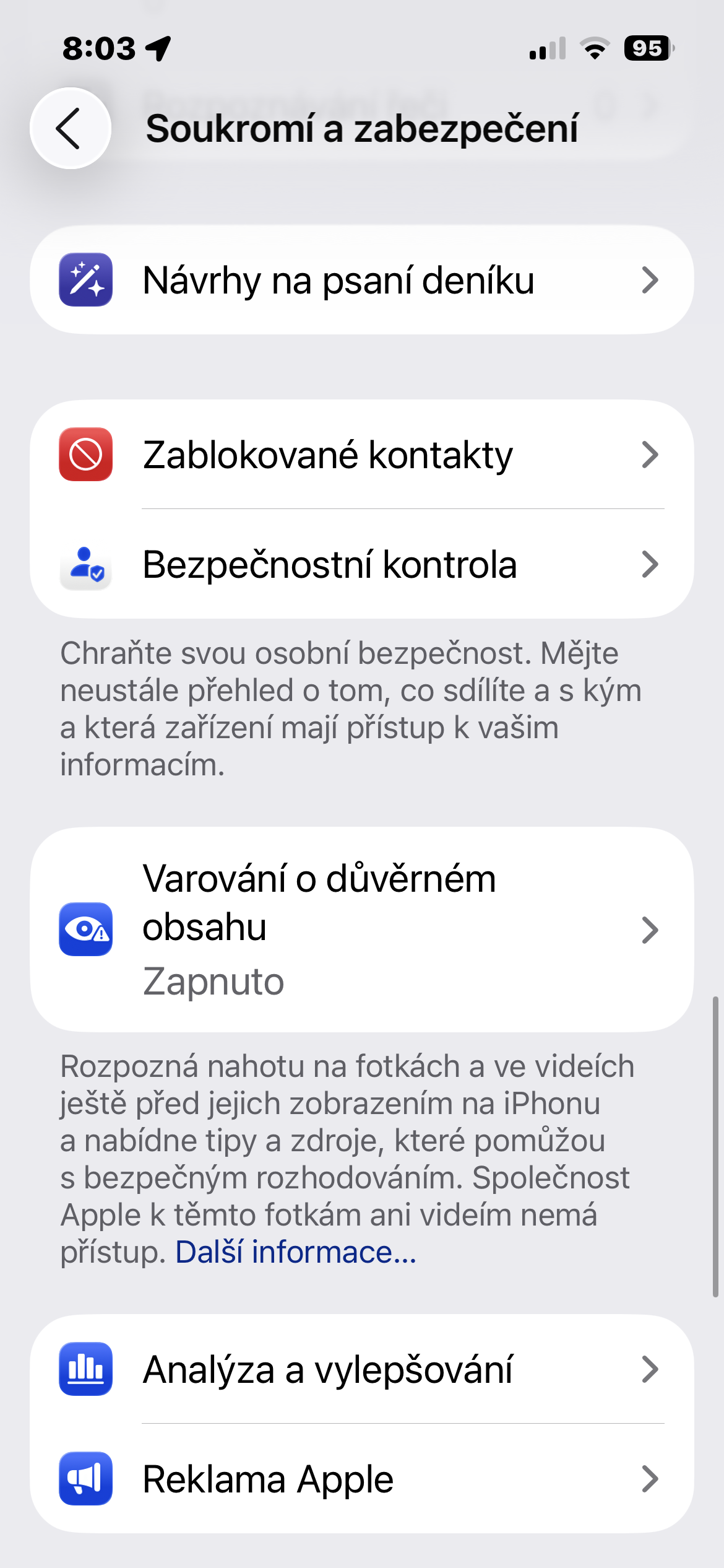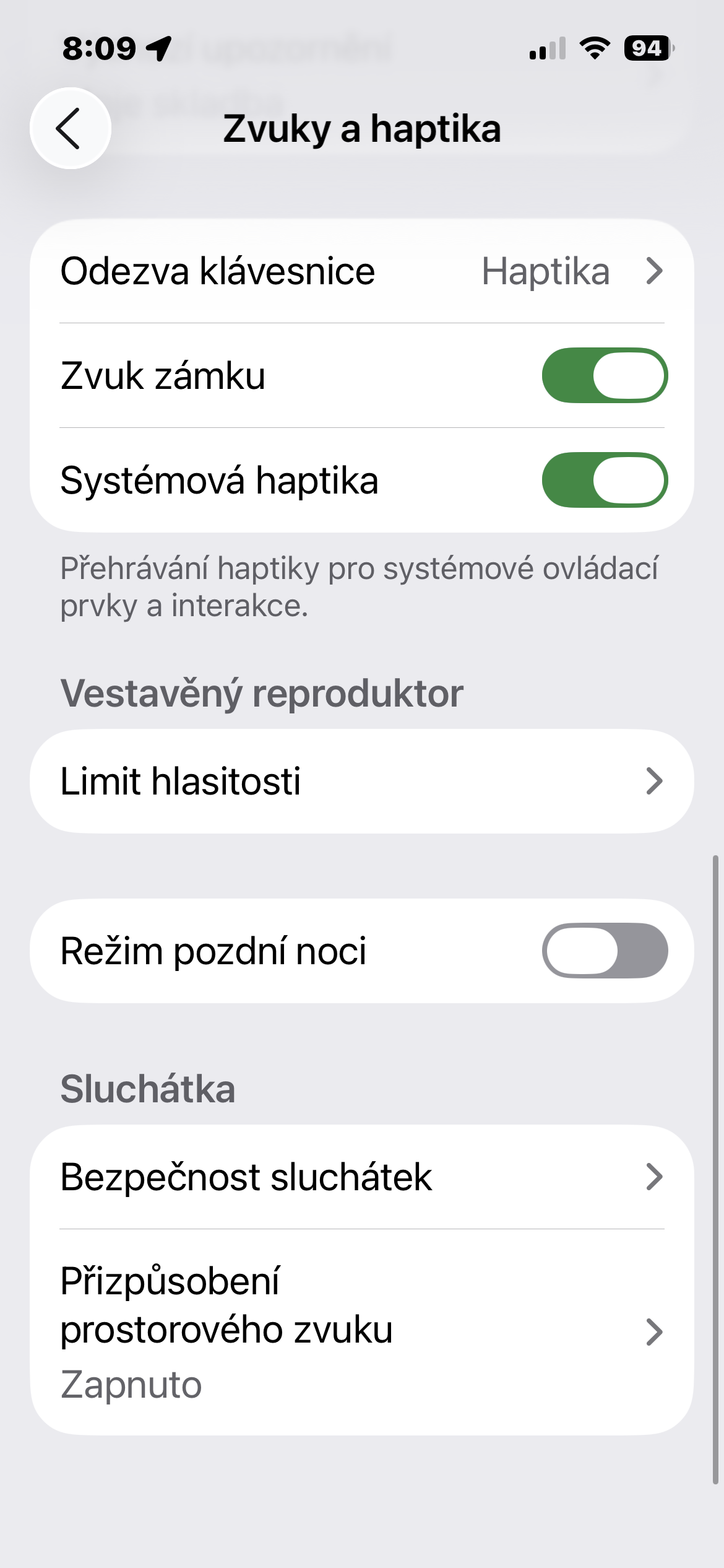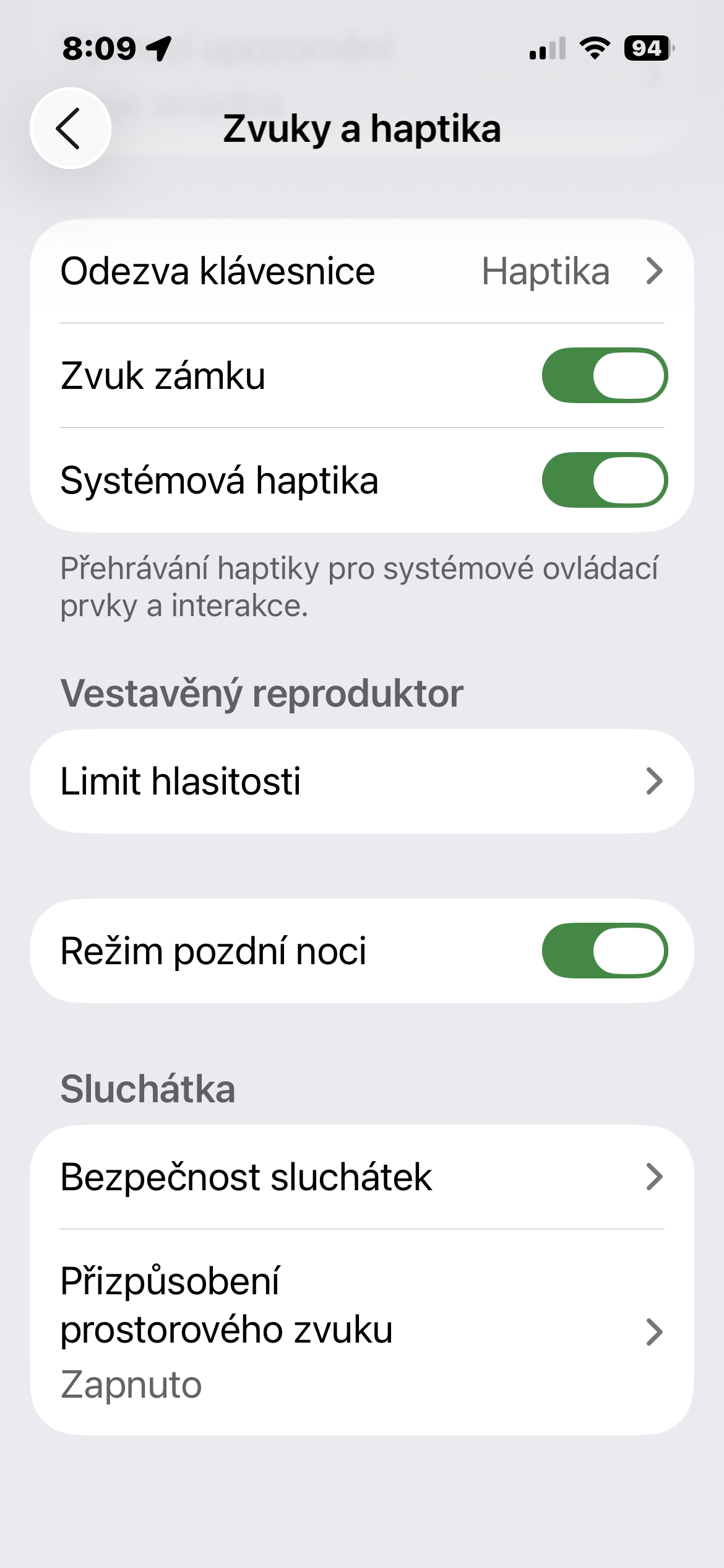 iOS 26 myslí i na chvíle, kdy jste offline nebo v náročnějších podmínkách. Díky funkci Satelitní Počasí dostanete aktualizace i bez mobilního či Wi-Fi připojení (zatím není aktivní v betě). Pokud máte špinavý objektiv fotoaparátu, iPhone vás na to upozorní. Diktování je nově chytřejší – můžete hláskovat slova nebo jména. Apple také rozšířil výběr zvuků na pozadí, přibyly například zvuky deště na střeše, noční ticho nebo praskající oheň. Pro večerní použití přibyl Režim pozdní noci s tišším nastavením zvuků.