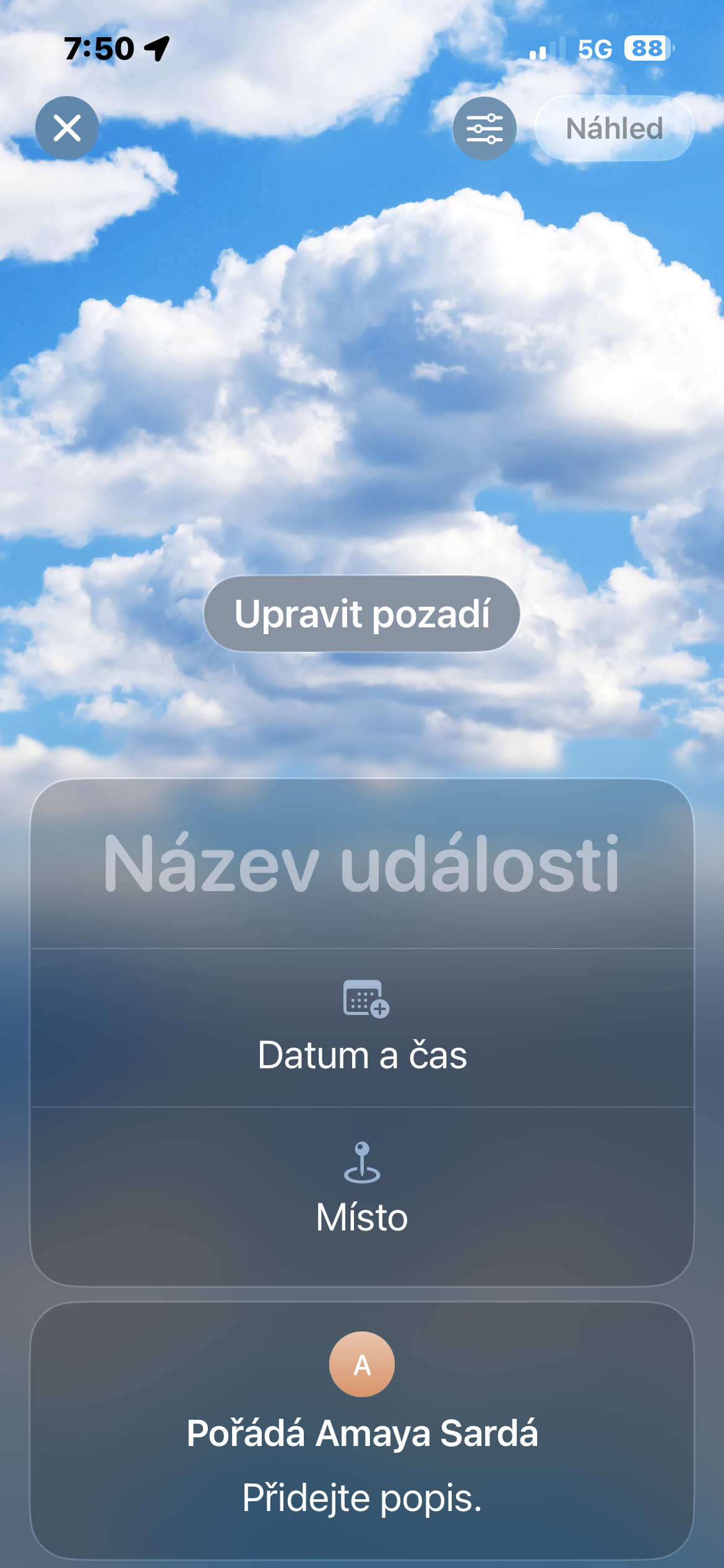 Používání aplikace jako takové je zdarma, ale pro vytváření událostí je nutné mít aktivní předplatné iCloud+.