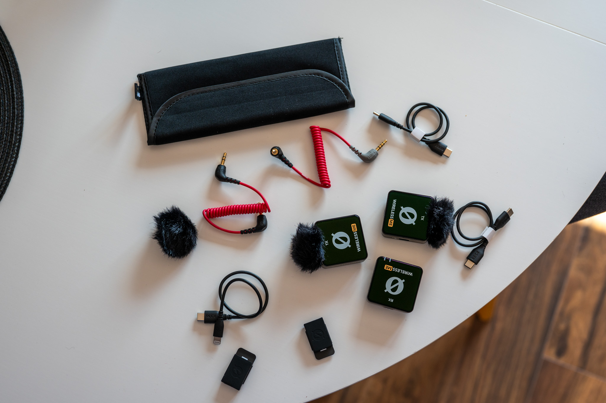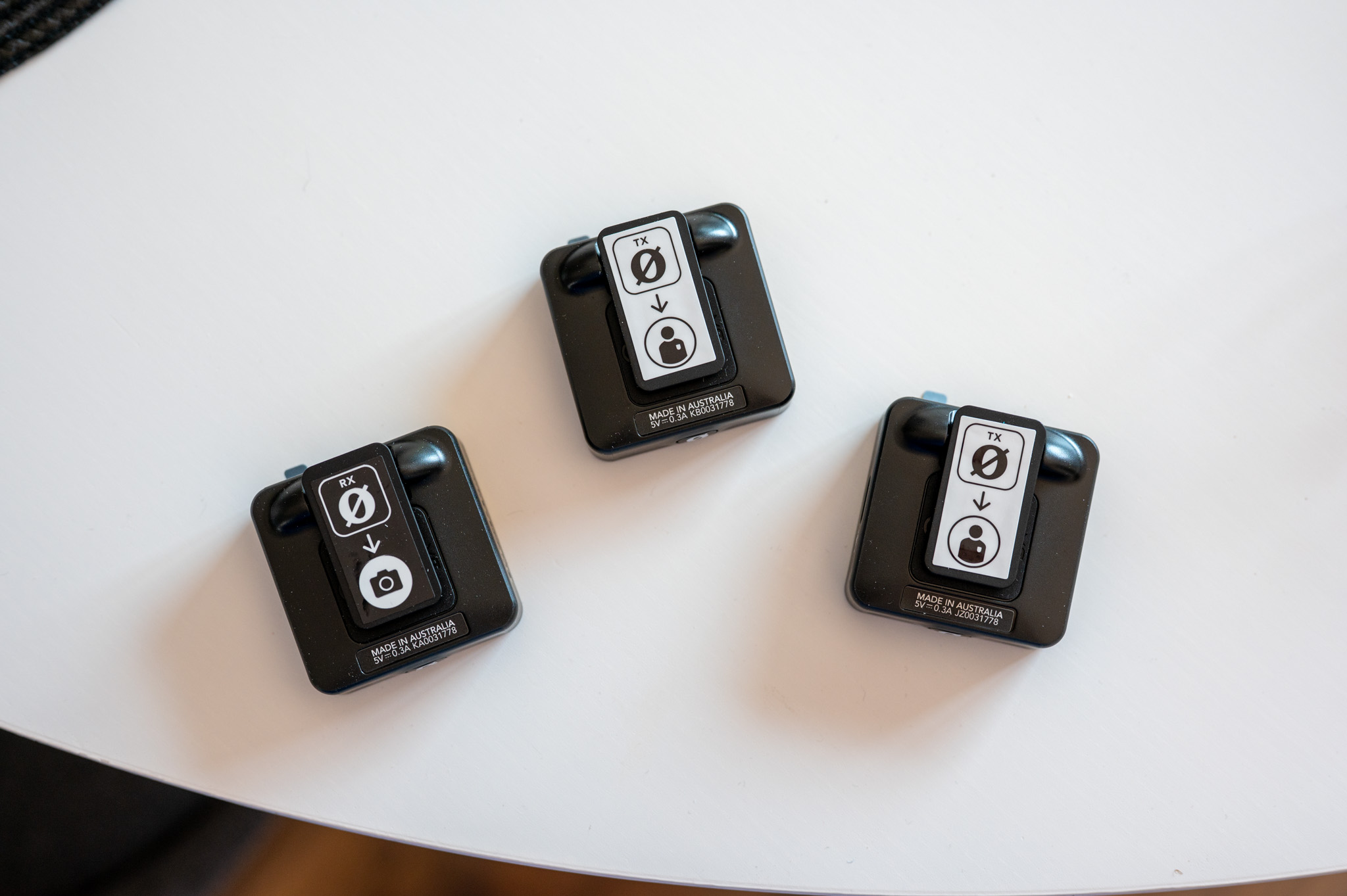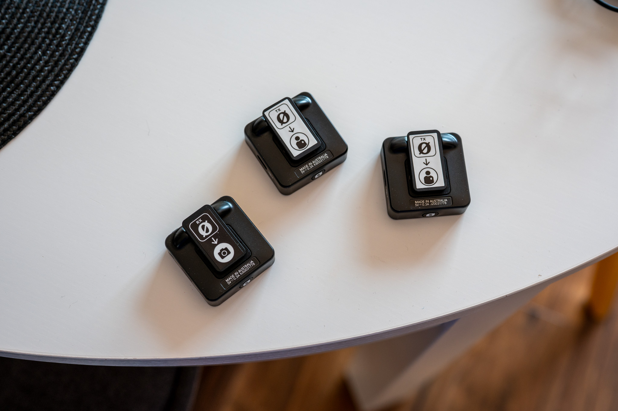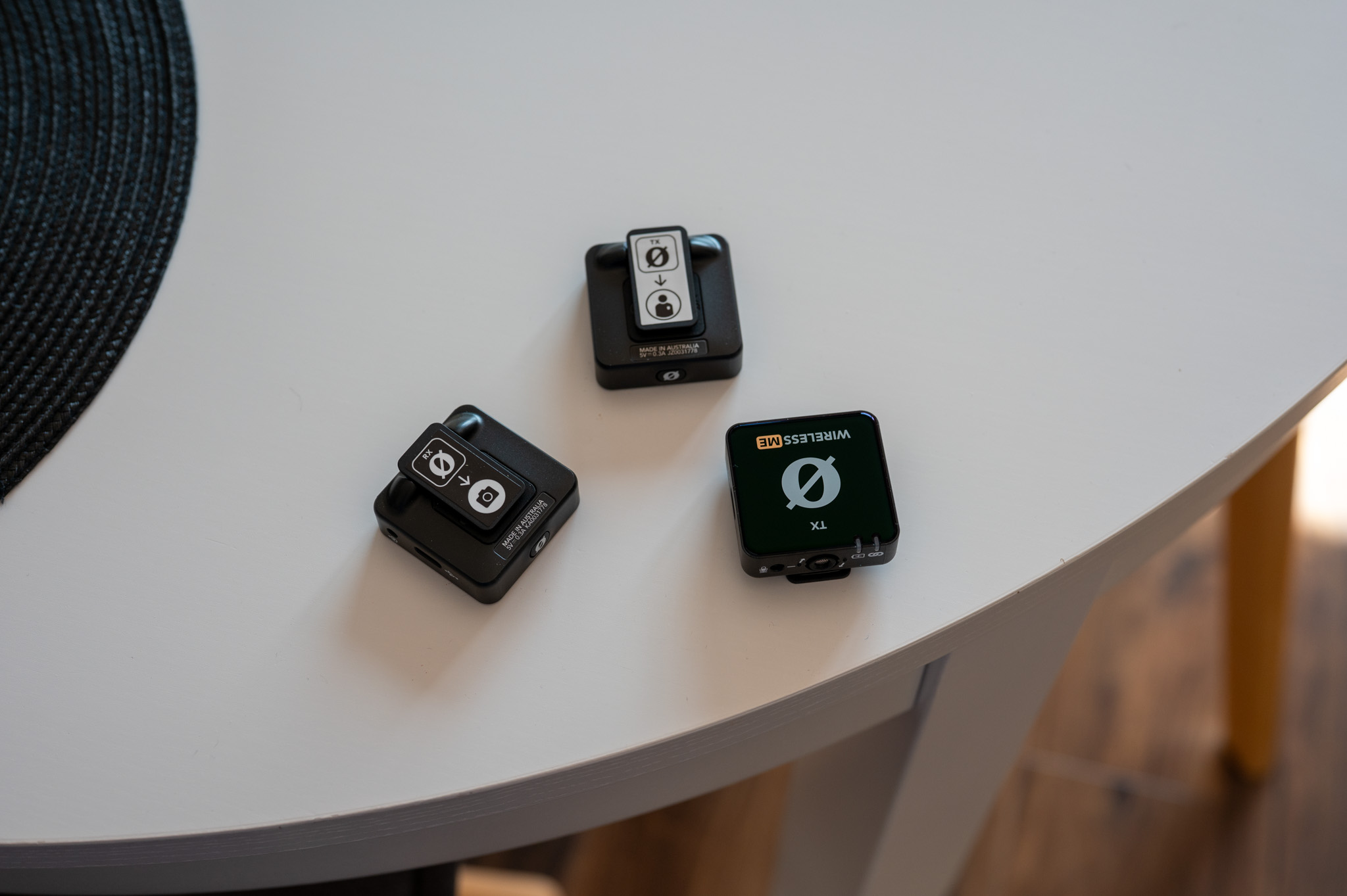 Jedna z největších výhod celého systému je, že není třeba nic nastavovat. Balení obsahuje dva miniaturní vysílače a jeden přijímač, které stačí zapnout a během pár vteřin se automaticky spárují. Vysílače i přijímač jsou přitom vybaveny všesměrovými elektretovými mikrofony, což znamená, že bez problémů zachytí i konverzaci, při které se mluvčí příliš nehýbou před kamerou. Díky kompaktním rozměrům (jen 4,4 × 4,5 × 1,9 cm) a hmotnosti, která sotva překračuje 30 gramů na jednotku, jsem o nich při natáčení prakticky nevěděl.