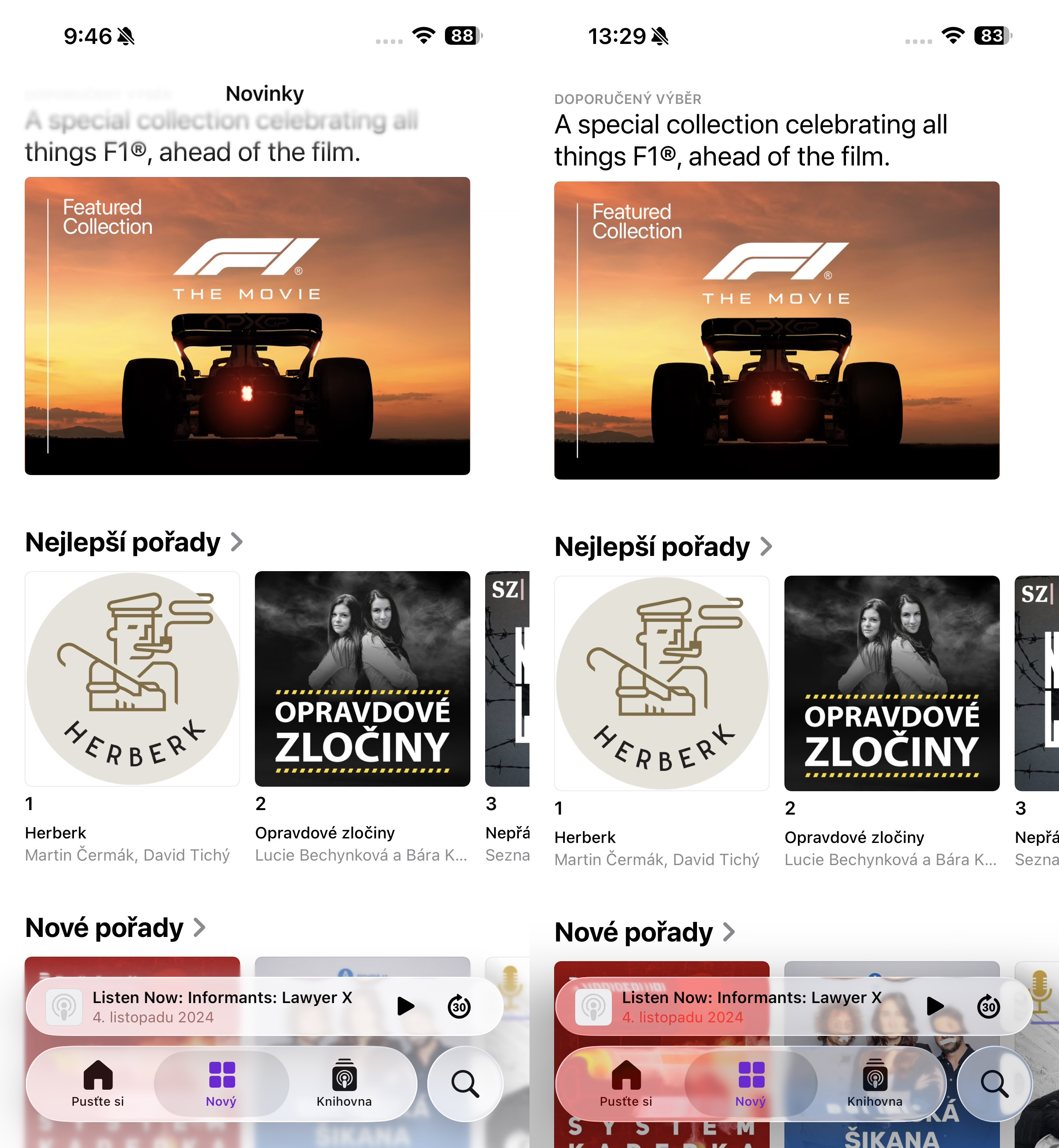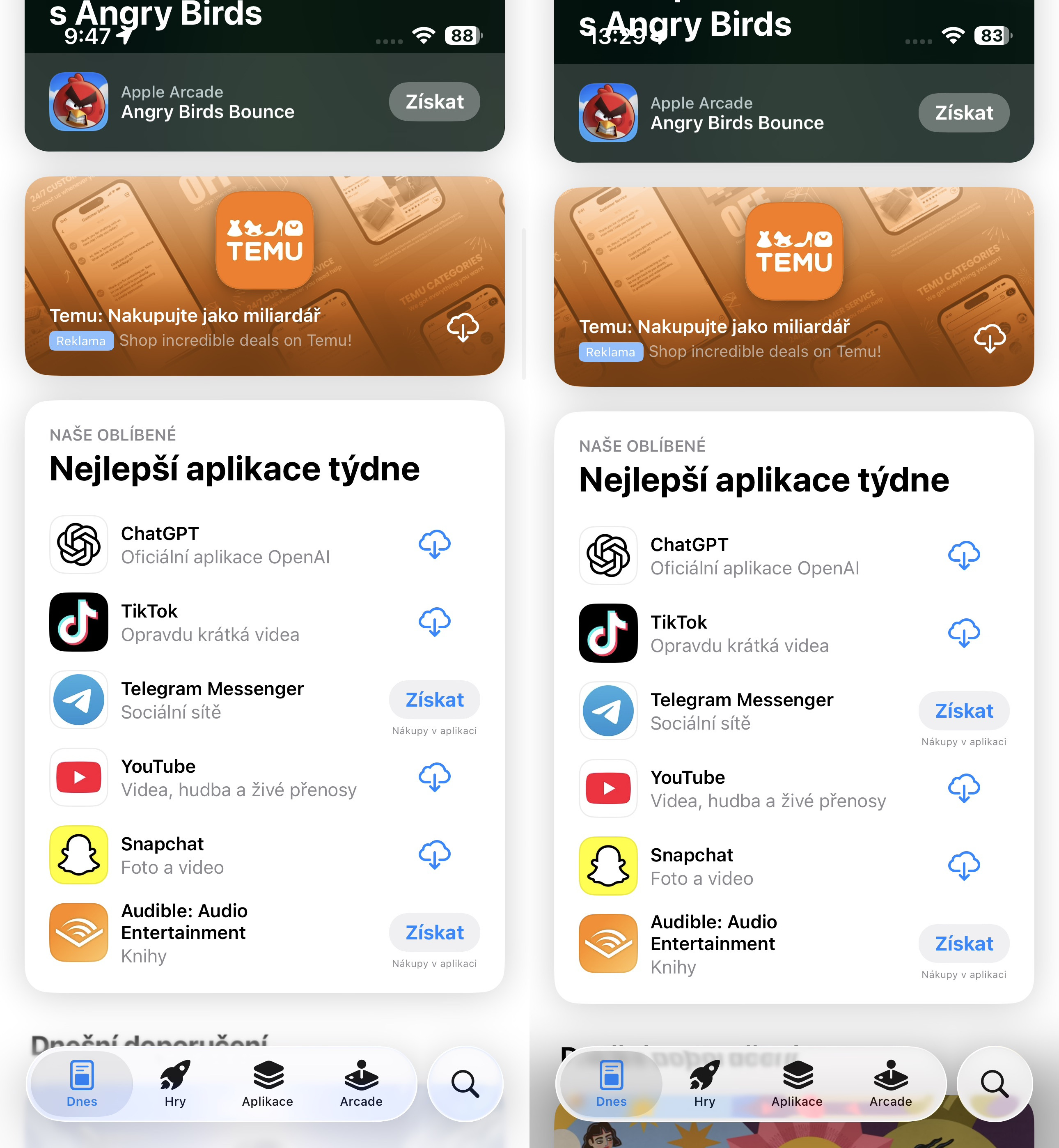 Nejvýraznější změny se týkají navigačních lišt v aplikacích jako Fotky, Hudba, App Store či Podcasty. Ty nově působí o něco průhledněji než v předchozí betě, což umožňuje lépe vyniknout barvám pozadí. Efekt matného skla je ale stále umírněný, takže text zůstává skvěle čitelný. Apple tak očividně hledá ideální kompromis mezi verzí beta 2 a beta 3.