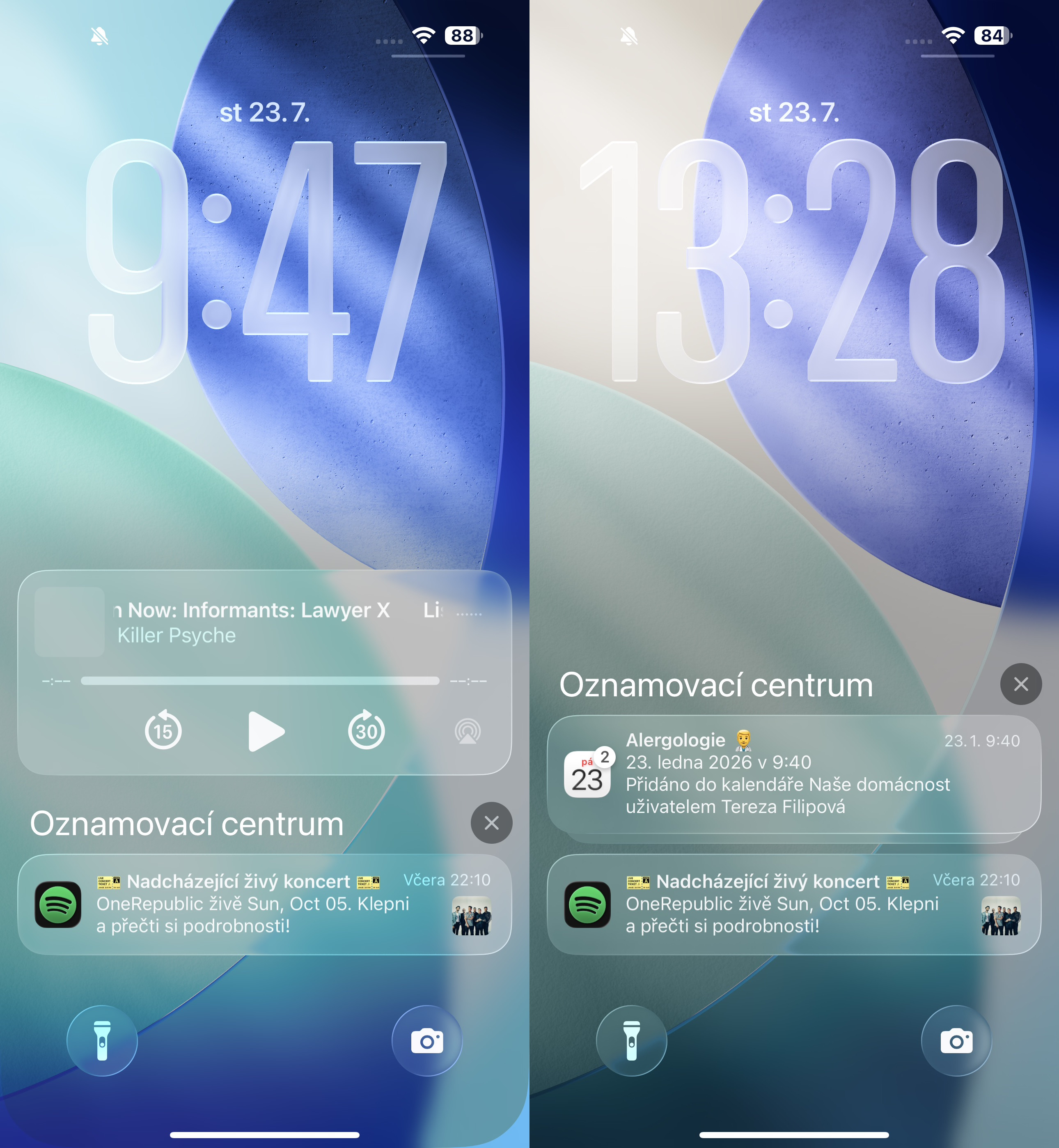 Většina dalších částí systému včetně Ovládacího centra, zamčené obrazovky či domovské obrazovky zůstává po stránce průhlednosti víceméně beze změny. Drobnou úpravou však prošla zamčená obrazovka, která nově při procházení oznámení dynamicky stmavuje své pozadí.