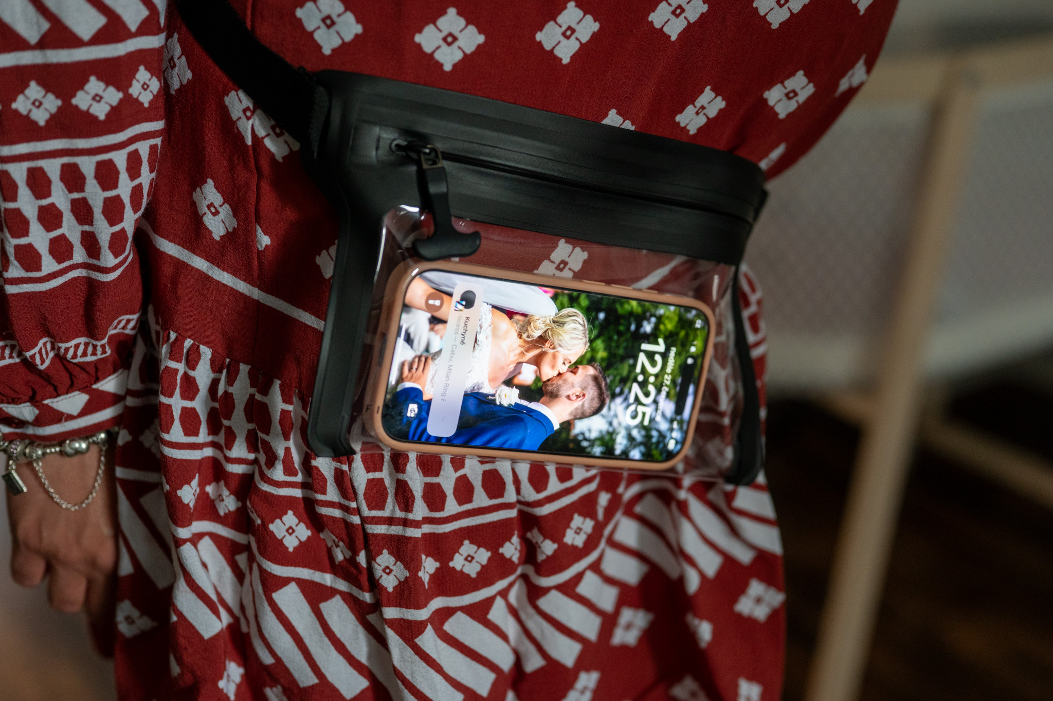Obrovským bonusem, který posouvá Dry Belt na vyšší úroveň, jsou transparentní přední i zadní stěny. Díky nim nejen že snadno zkontrolujete, co v pouzdře máte, ale hlavně můžete telefon používat přímo skrz fólii. Zprvu jsem si říkal, že tuto funkci asi příliš nevyužiji, ale při testování se ukázalo, že dotyková odezva funguje nad očekávání dobře a to včetně Face ID, které se chytilo i při horším světle nebo s lehce orosenou fólií. Dost rychle jsem si proto zvykl na rychlou kontrolu na Messengeru, spouštění hudby přes Spotify či kontrolu notifikací bez nutnosti telefon vytahovat.