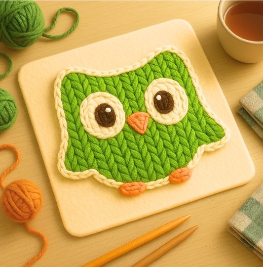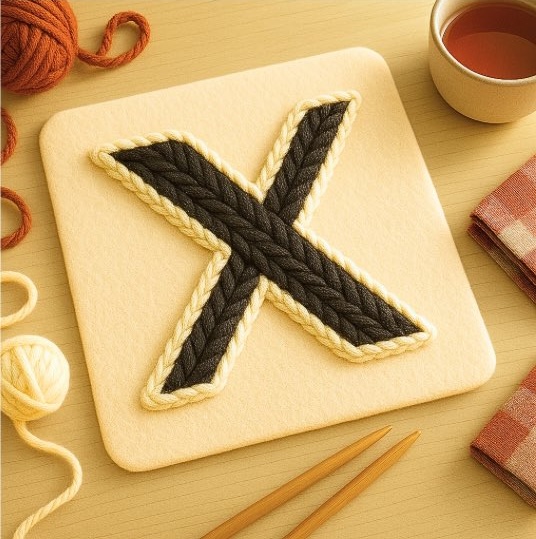 Co si pod tím představit? Logo například značky Apple, Nike, nebo třeba Starbucks, vypadá, jako by jej někdo s láskou a precizností upletl z husté vlny. Každé vlákno je jemně texturované, s viditelnými detaily stehů a měkkým krémovým obšitím po okrajích. To celé je položené na pastelově béžové plsti, usazené na dřevěném stole z jemně světlého dubu. Kolem nechybí klubíčka, jehlice, složený patchwork ani šálek horkého čaje – zkrátka idyla, která dýchá ruční tvorbou a klidem.