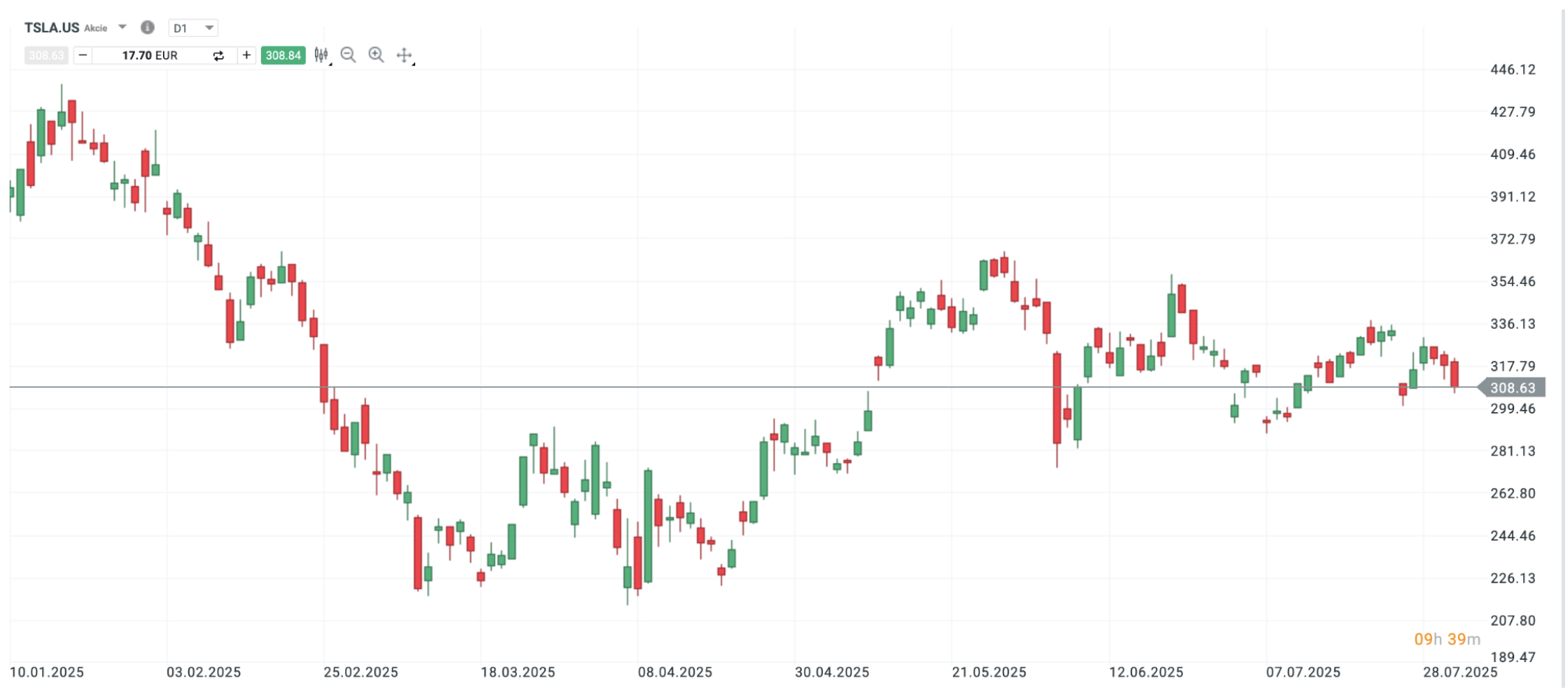 Vývoj ceny TSLA.US, Platforma xStation, minulá výkonnost není spolehlivým ukazatelem budoucí výkonnosti.