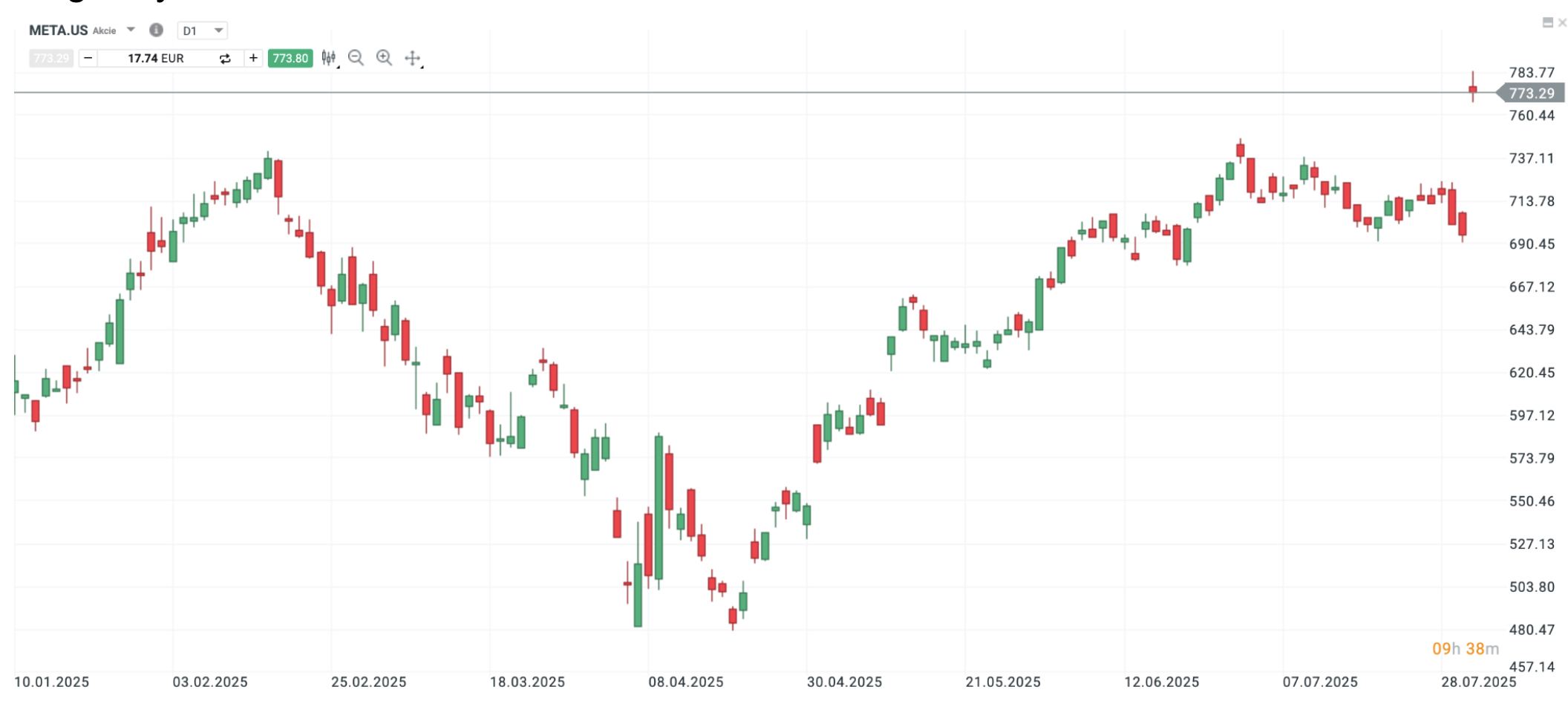 Vývoj ceny META.US, Platforma xStation, minulá výkonnost není spolehlivým ukazatelem budoucí výkonnosti.