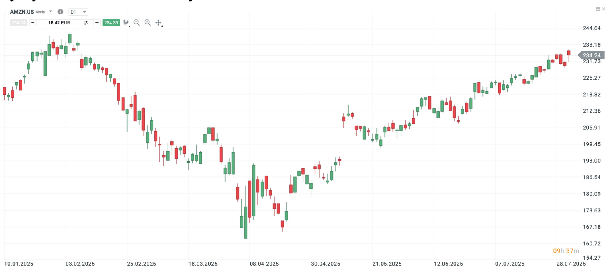 Vývoj ceny AMZN.US, Platforma xStation, minulá výkonnost není spolehlivým ukazatelem budoucí výkonnosti.