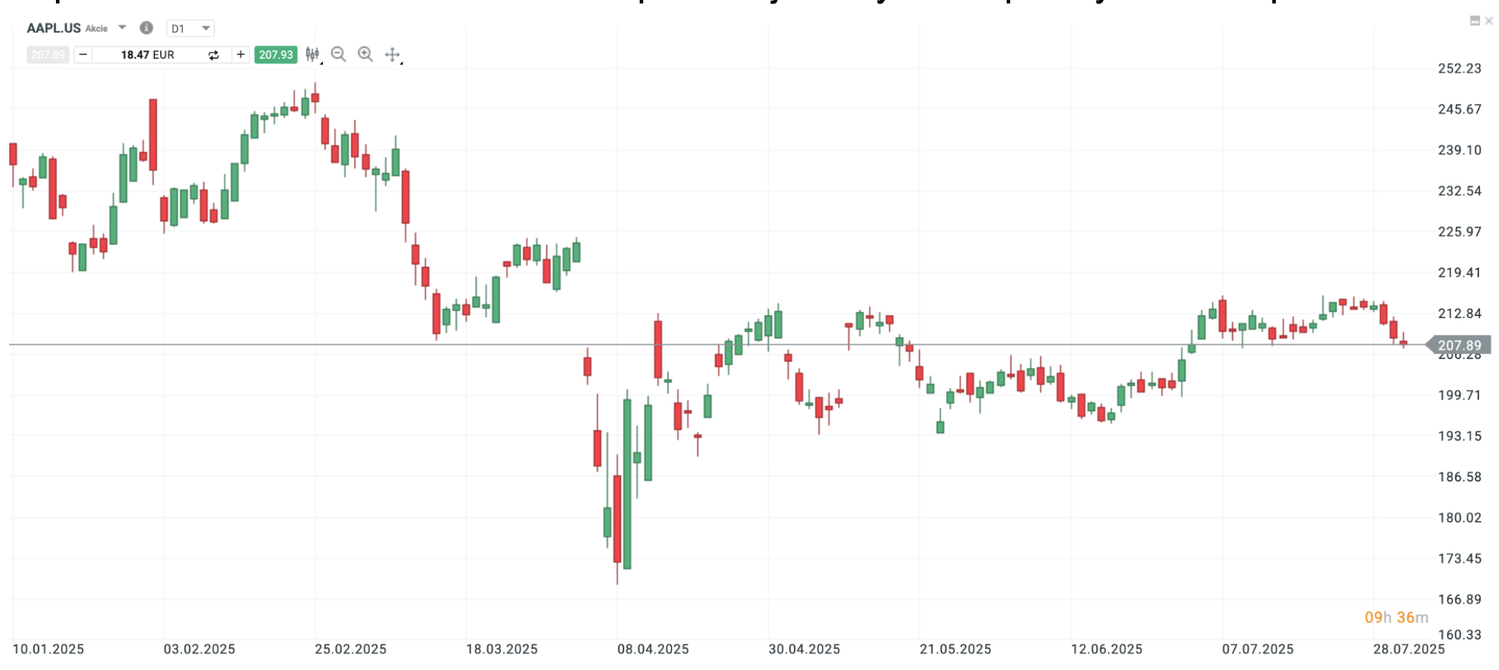 Vývoj ceny AAPL.US, Platforma xStation, minulá výkonnost není spolehlivým ukazatelem budoucí výkonnosti.