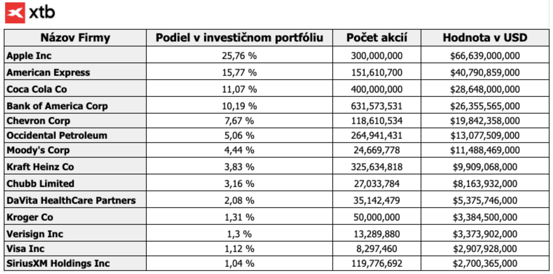 - Aktuální valuaci, strukturu portfolia a podrobnosti o klíčových osobnostech společnosti naleznete v novém e-booku od XTB, který nabízí detailní pohled na fungování jedné z nejvýznamnějších firem světa.