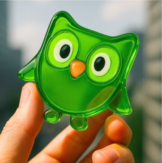 Jak si to představit v praxi? Představte si například logo Applu, plně průhledné, vytvořené z vrstveného skla s jemnými barevnými odlesky, jak jej drží přirozeně nasvícená lidská ruka. Prsty vrhají měkké stíny, světlo se lomí skrze materiál, povrch loga působí hladce a prémiově. V pozadí je jemně rozmazané město s bokehem, který scéně dodává hloubku i atmosféru.