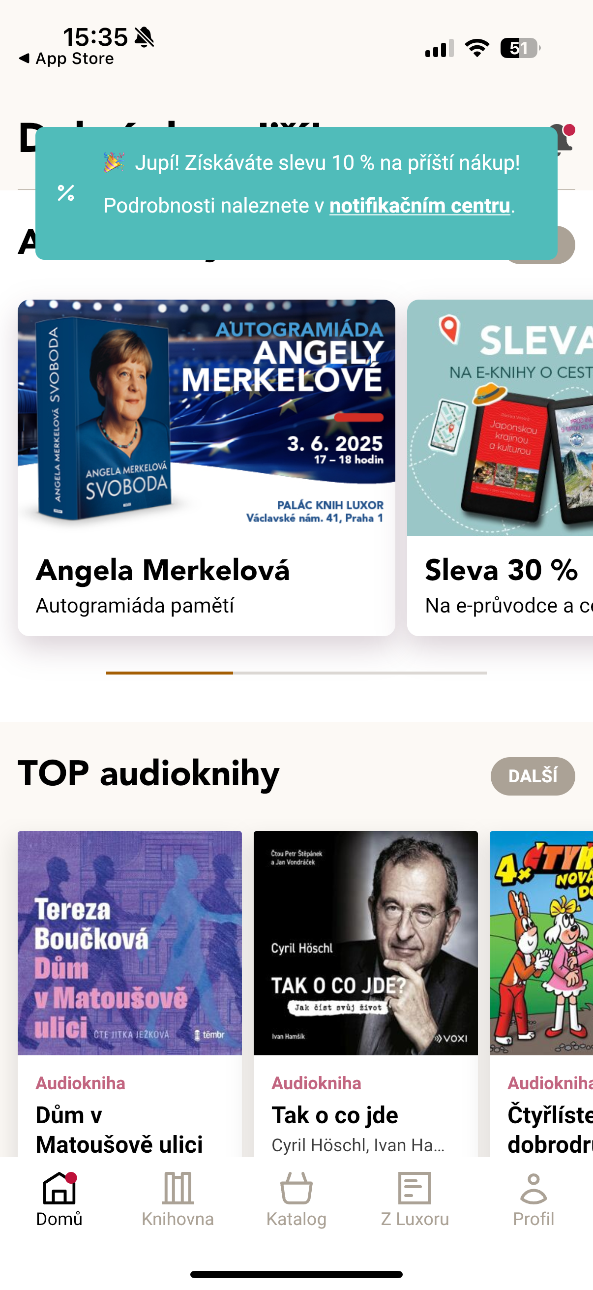 Co jsem ocenil, byla i sekce věnovaná slevám a speciálním akcím. Jako čtenář rád ulovím dobrou nabídku, a tak jsem s potěšením využil několik zajímavých slev, které aplikace sama upozornila. Je fajn, že nemusíte pořád sledovat různé weby nebo newslettery, protože všechny důležité novinky vám přistávají přímo v aplikaci. Díky tomu se mi podařilo rozšířit knihovnu o pár bestsellerů, které bych jinak možná přehlédl. A jestli máte rádi překvapení, nebojte se – notifikace o akcích se objeví v pravý čas, takže máte vše pod kontrolou.