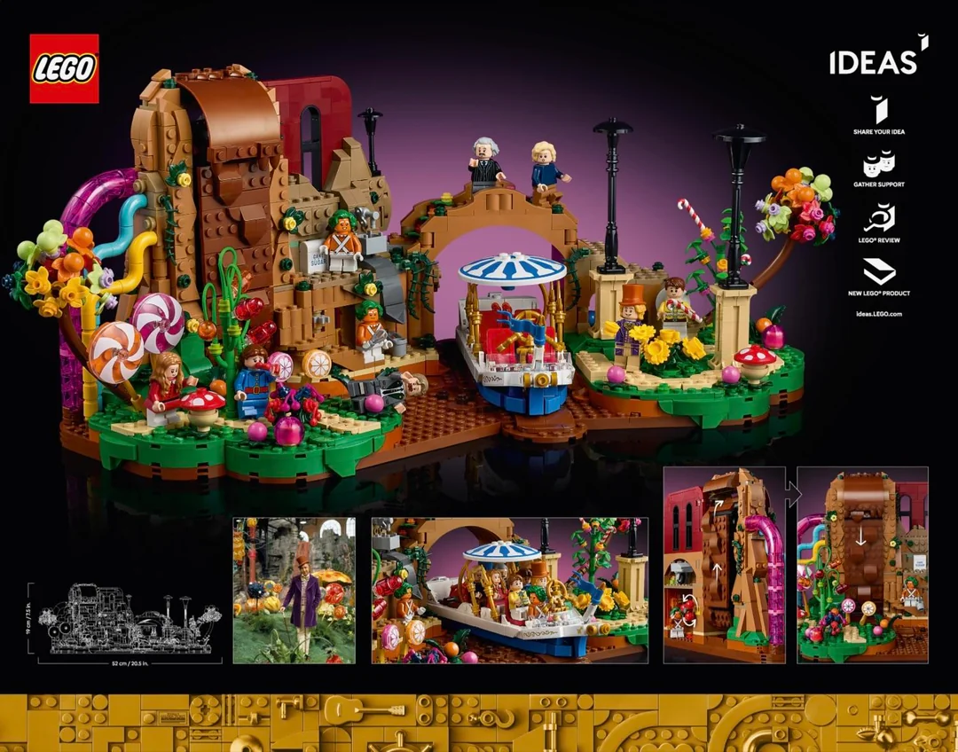 LEGO se chystá opět blýsknout parádním kouskem z řady Ideas. Na internet totiž unikly fotky parádního setu, ve kterém se dočkáme legendárního Willyho Wonky (respektive jeho první filmové verze) a jeho čokoládovny, a to v podobě detailně propracované podobě, která si bere inspiraci z ikonického filmu.