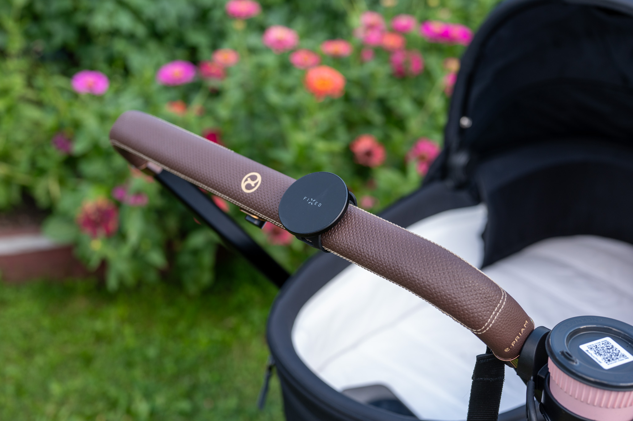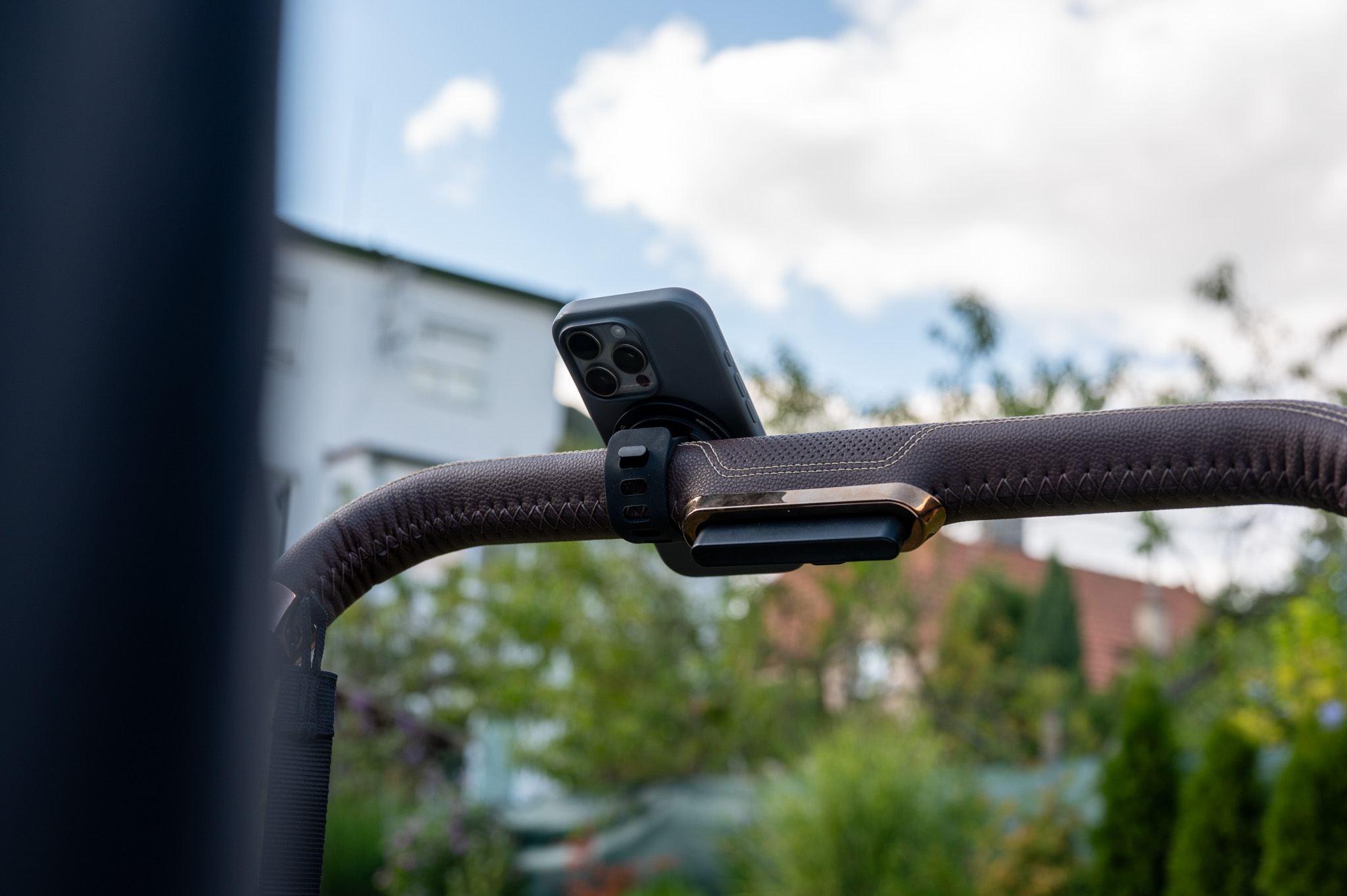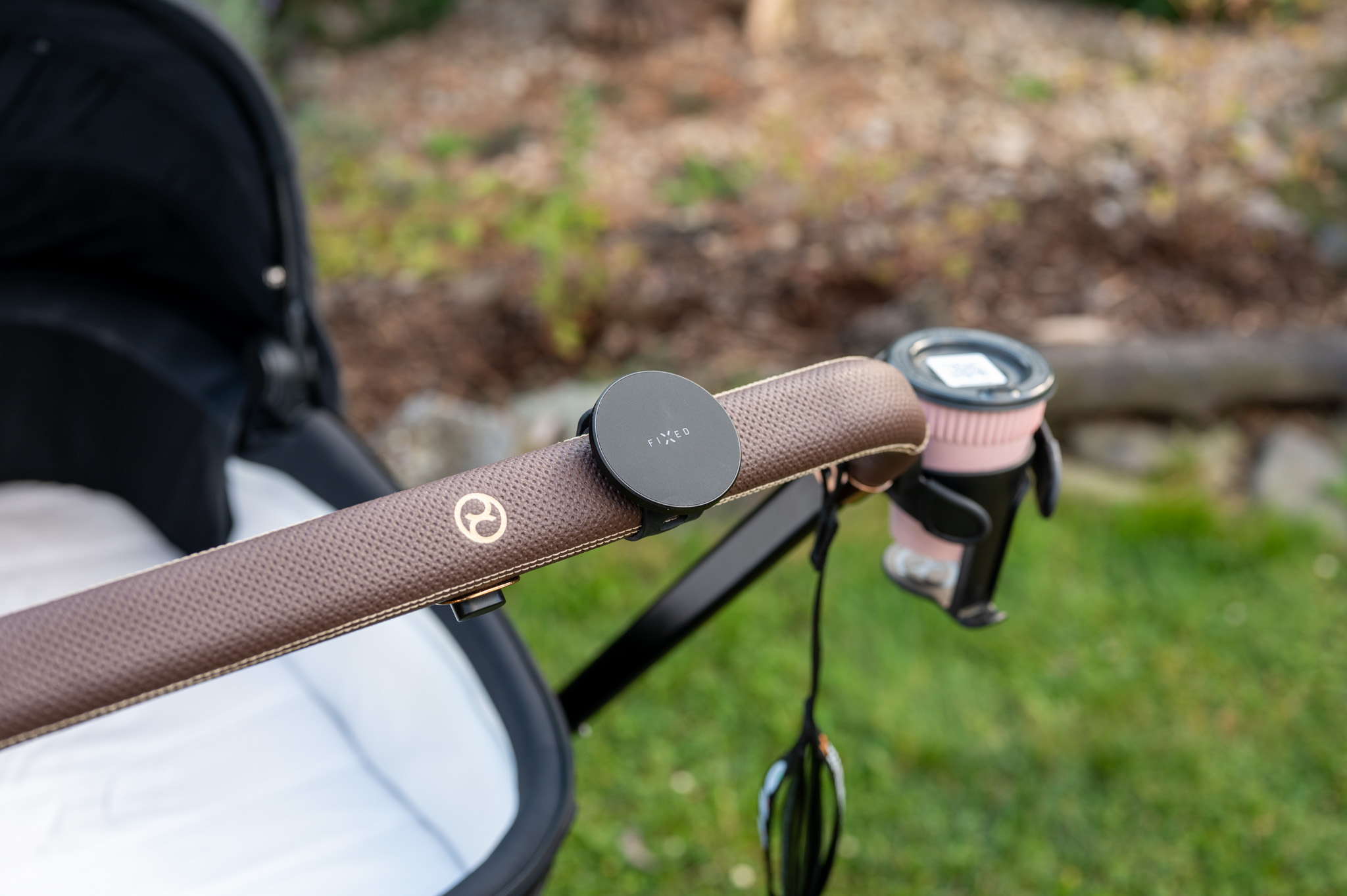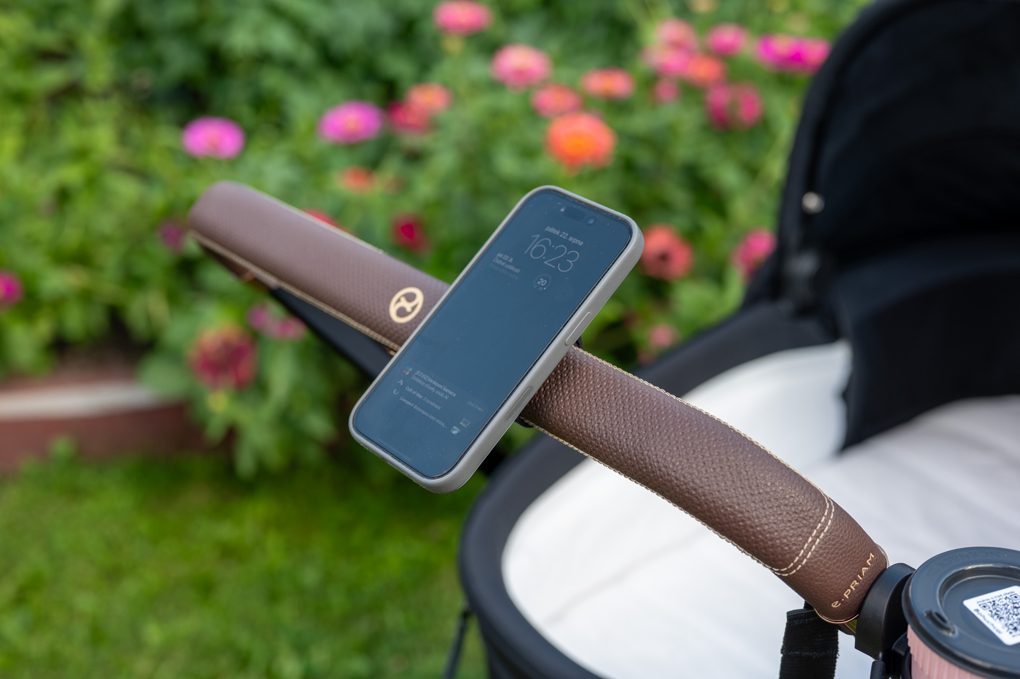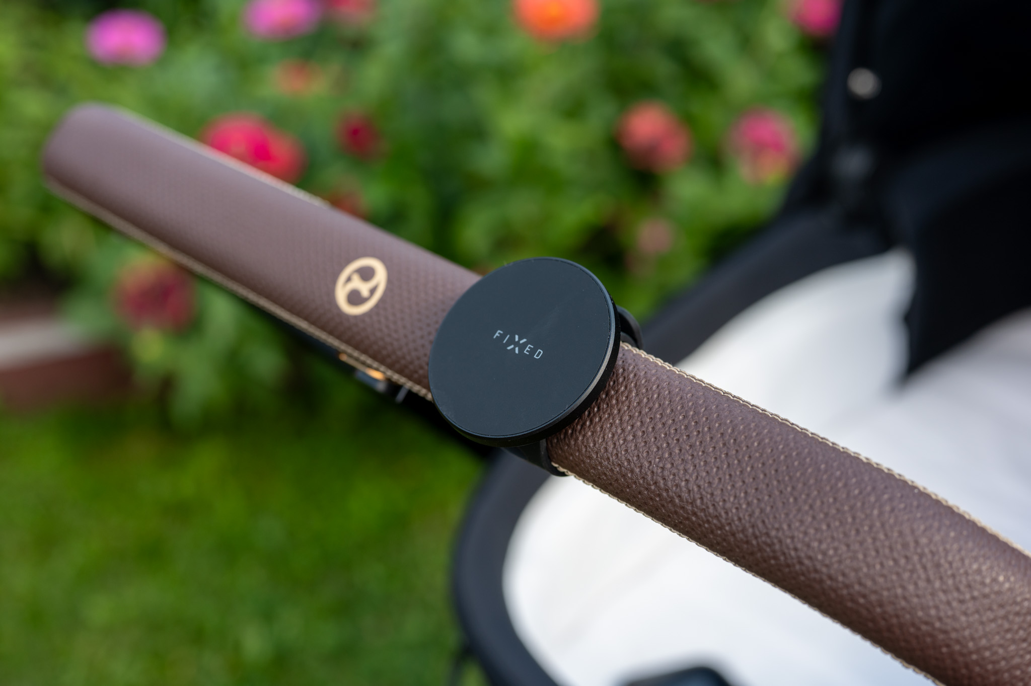 Samotný povrch držáku je pogumovaný, takže nehrozí škrábance, a rozměry 60 × 60 mm s váhou 73 g z něj dělají nenápadný, ale užitečný doplněk, který třeba právě na madlu kočárku nevypadá vůbec špatně a hlavně nezavazí (dáte-li si jej samozřejmě tak, aby byl mimo místo, kde rukojeti držíte).