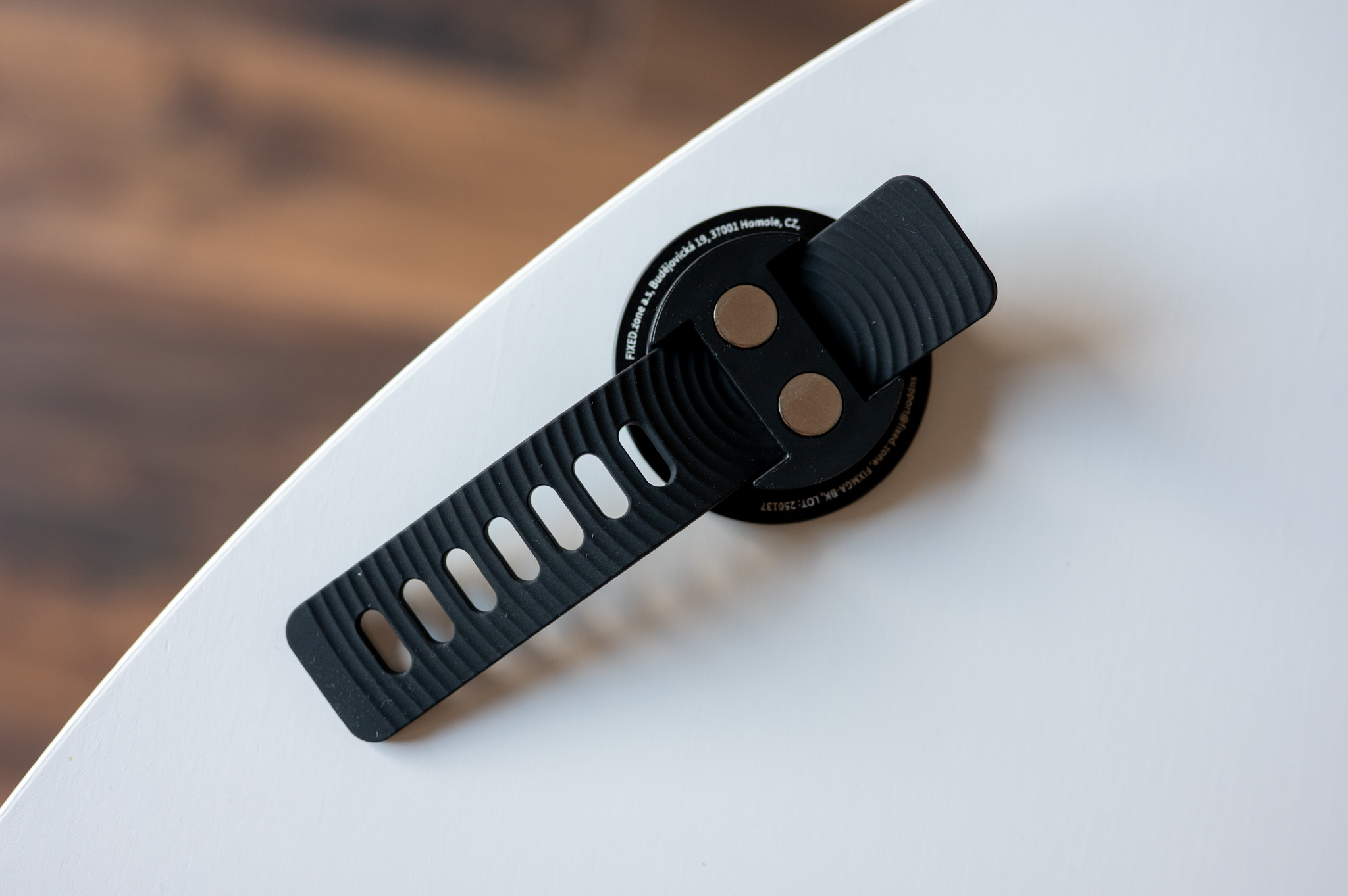 Do redakce nám na vyzkoušeli dorazila novinka ve formě MagGrip Active. V principu se přitom jedná o velmi jednoduché příslušenství – jde totiž jen o malý kulatý magnet s kovovým tělem v kombinaci se silikonovým páskem. V praxi však dokáže tato drobnost udělat trénink, ale vlastně i spoustu dalších věcí mnohem pohodlnější. Díky pružnému pásku lze totiž FIXED MagGrip připnout prakticky na jakýkoliv rám – ať už jde o běžecký pás, veslovací trenažér, rotoped, nebo třeba i madlo kočárku, plotovou tyčku nebo třeba větev stromu. Stačí, aby měla daná věc průměr mezi 2,1 a 4 cm, a držák sedí pevně. A díky tomu, že jej drží silikonový pásek, nemá držák absolutně tendenci klouzat.