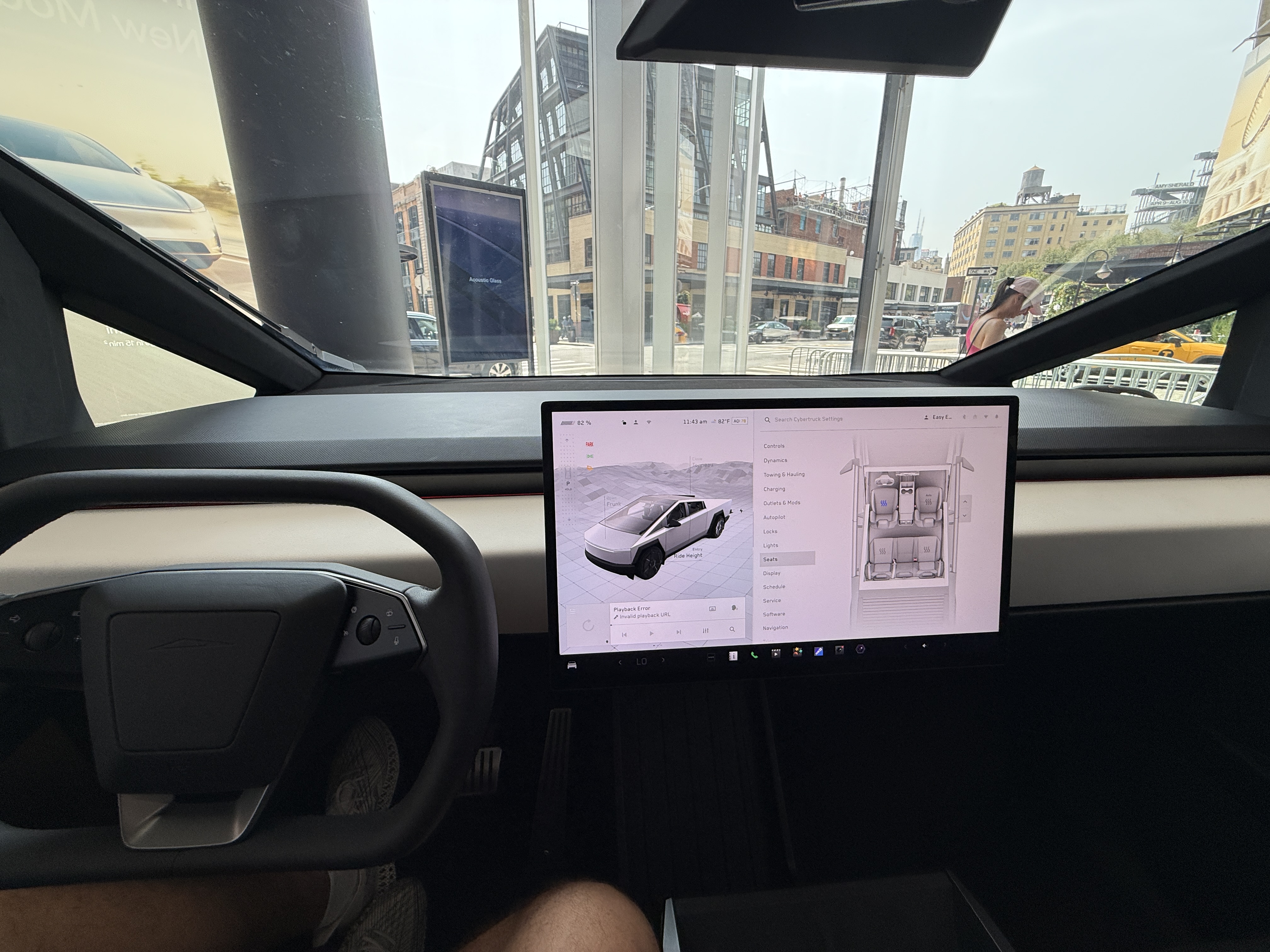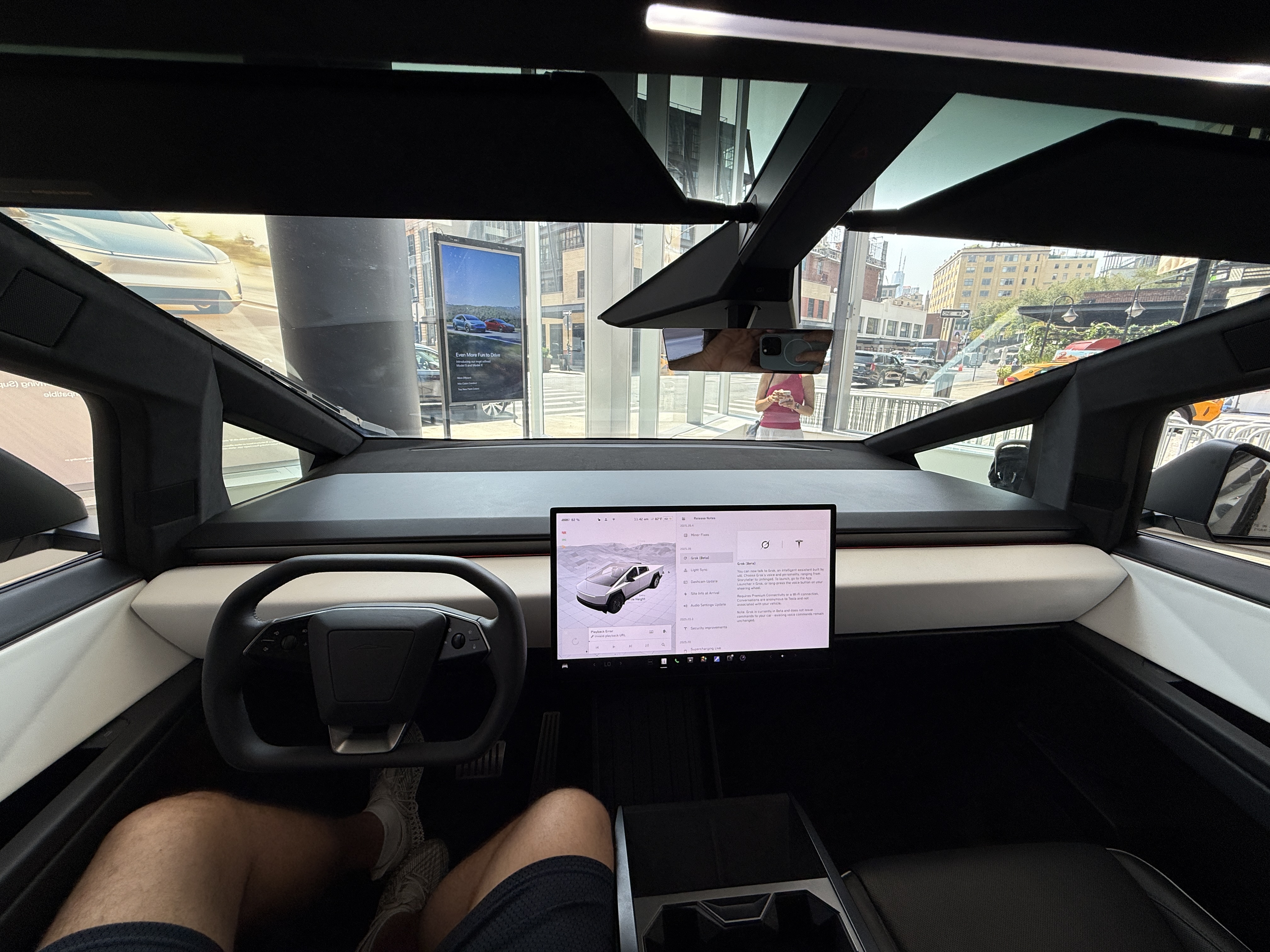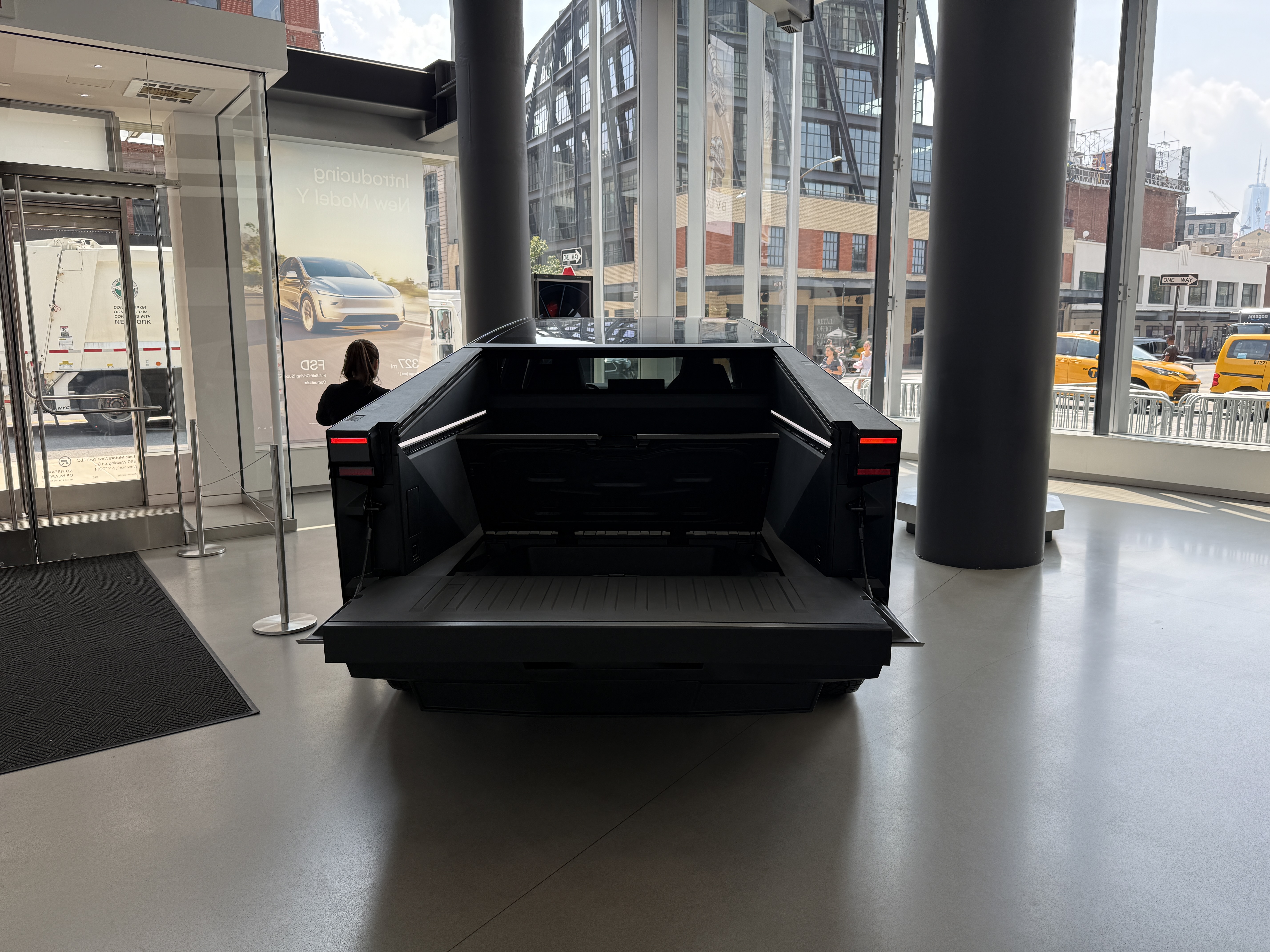 Pokud budete v New Yorku a zajímá vás Cybertruck, není nic jednoduššího než zajít do showroomu Tesla, kde si jej kromě prohlídky ze všech stran můžete i vyzkoušet, sednout si do něj a otestovat vše dle libosti. Máte také možnost vidět rozebrané ty nejdůležitější části. Můžete se zeptat na všechny všetečné dotazy přímo lidí v showroomu, kteří – musím uznat – o produktech vědí opravdu všechno. Jako bonus si jej můžete buď vyzkoušet řídit, nebo se s ním nechat odvést v rámci testovací jízdy. Já jsem bohužel neměl u sebe mezinárodní řidičák, a tak jsem se musel spokojit pouze se svezením. Pokud si tedy chcete Cybertruck vyzkoušet řídit, nezapomeňte si vzít mezinárodní řidičák.