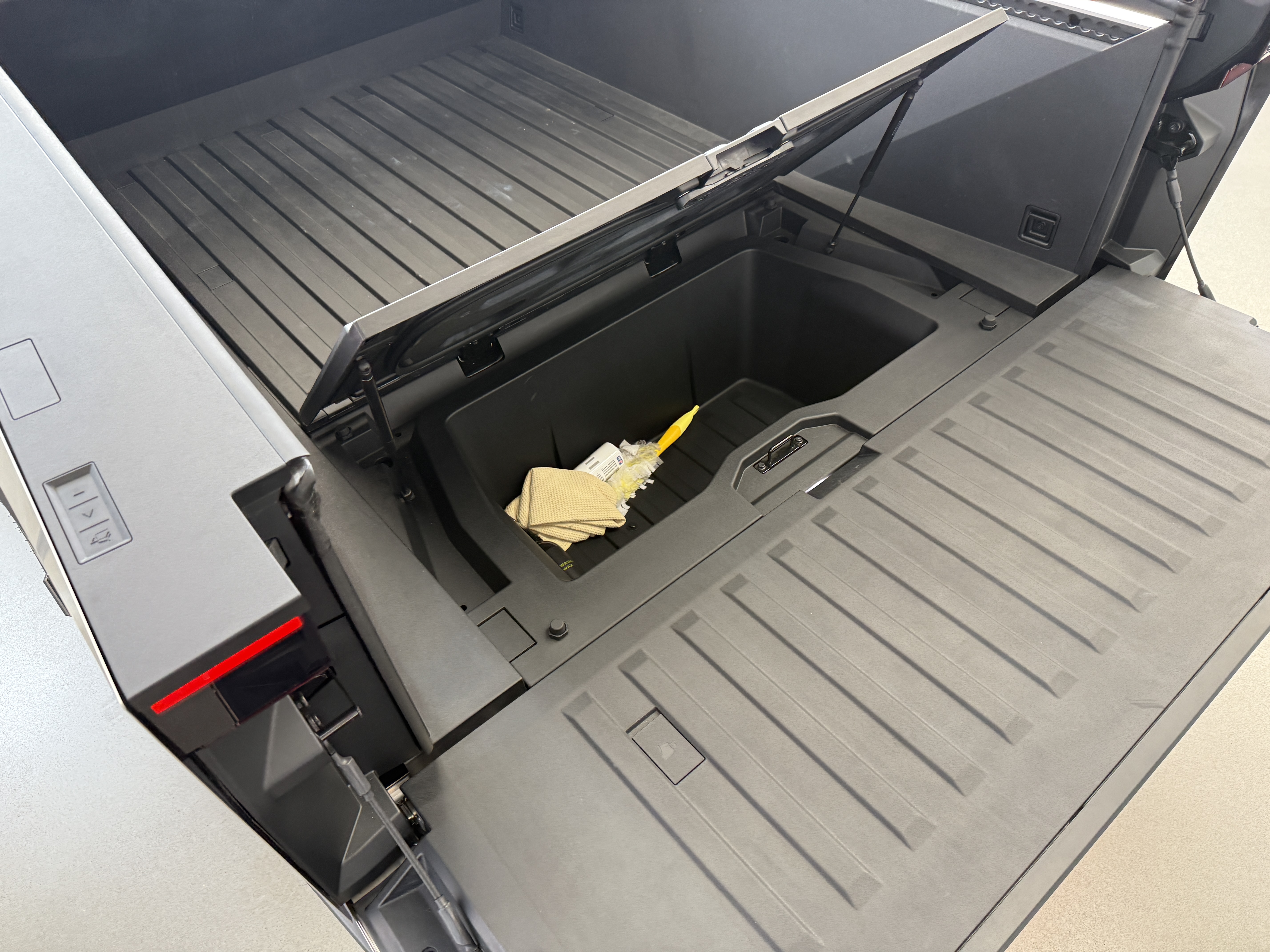 Korba je gigantická a kdyby nestačila, má Cybertruck ještě přední kufr, který je hodně podobný kufrům klasických menších vozů. Pokud tedy například vaše žena pojede na nákup a nechce řešit korbu, která je přece jen dost vysoko, může si otevřít přední kufr, kam se jí týdenní nákup pro čtyřčlennou rodinu pohodlně vejde. Co mi trochu vadí, je fakt, že zatímco víko kufru se otevře automaticky, zavřít jej musíte ručně – nelze jej zavřít elektronicky. Zajímavé však je, že má soft-close. Pro drobnou ženu je pak víko celkem těžké a neumím si příliš představit, že by jej několikrát denně zavírala, když na korbu dá například kočárek. Co se mi ale hodně líbí, je roletka, která kryje celou korbu. Díky tomu máte z pick-upu klasické SUV s kufrem, do kterého můžete dát cokoli – stejně jako do klasického zavazadlového prostoru u auta. Roletka je rychlá, plně automaticky ovládatelná a můžete ji zastavit v jakékoli poloze, což se hodí při kotvení nestandardních nákladů.