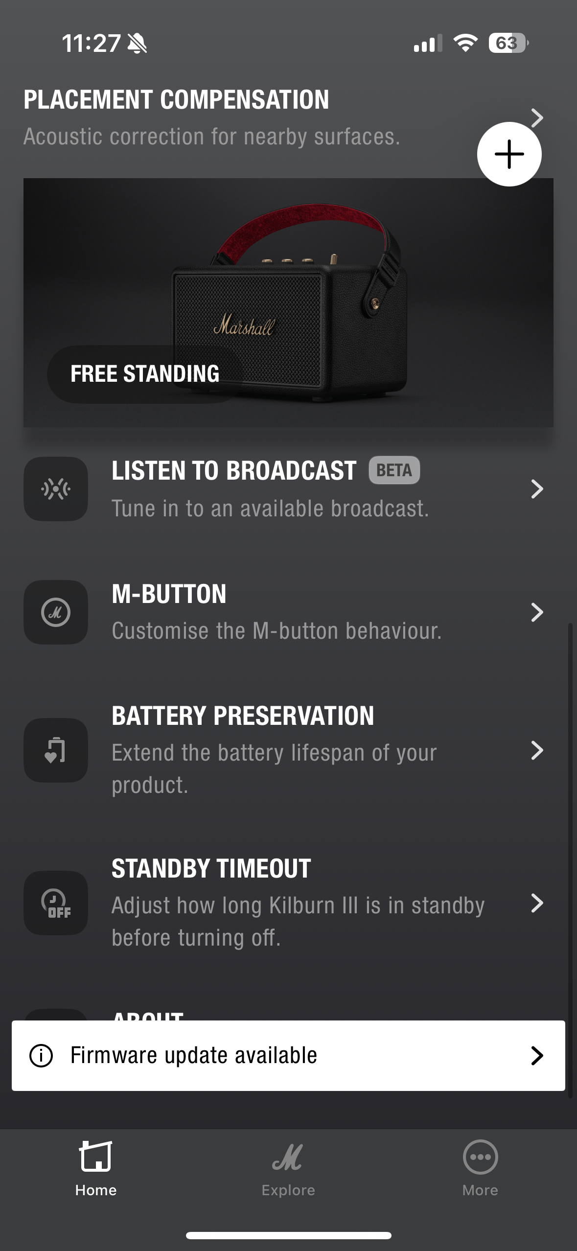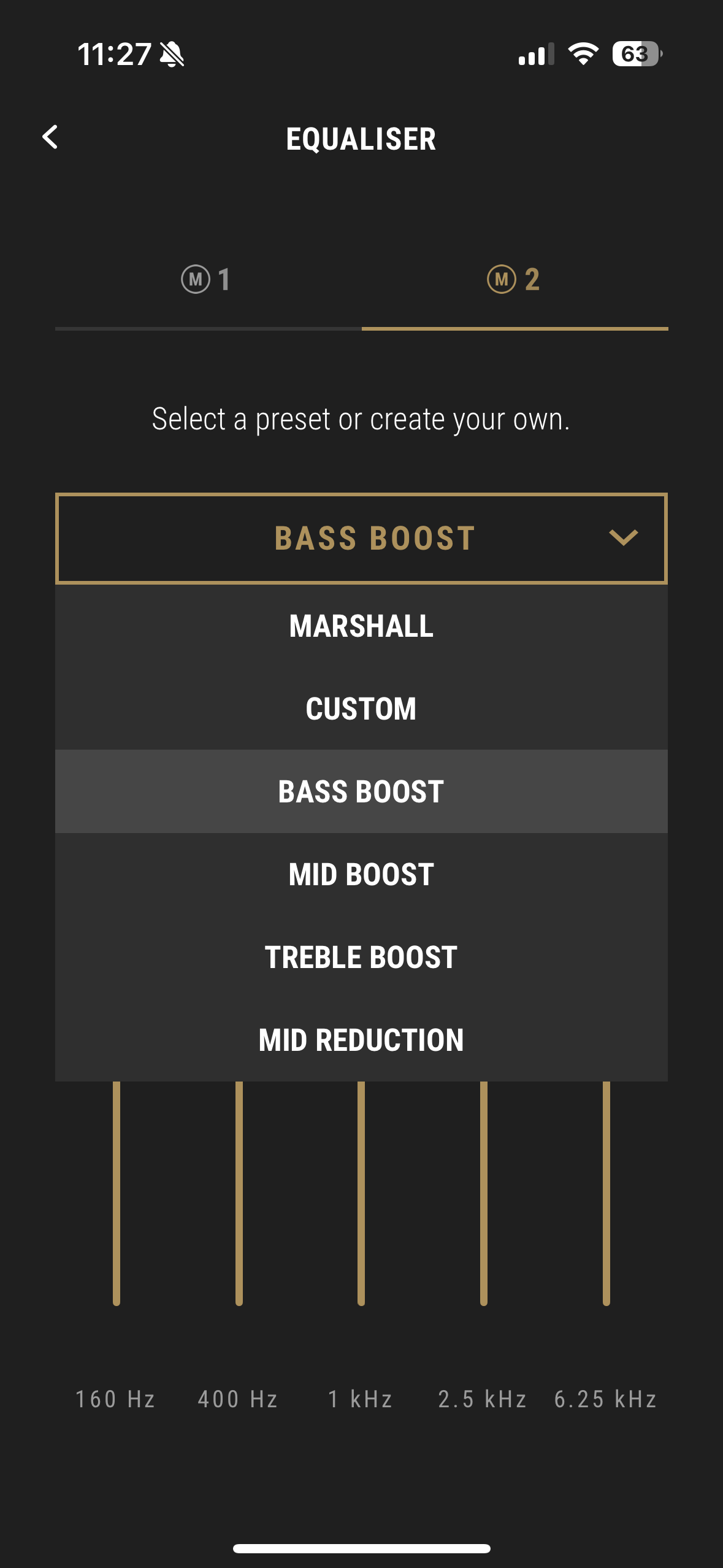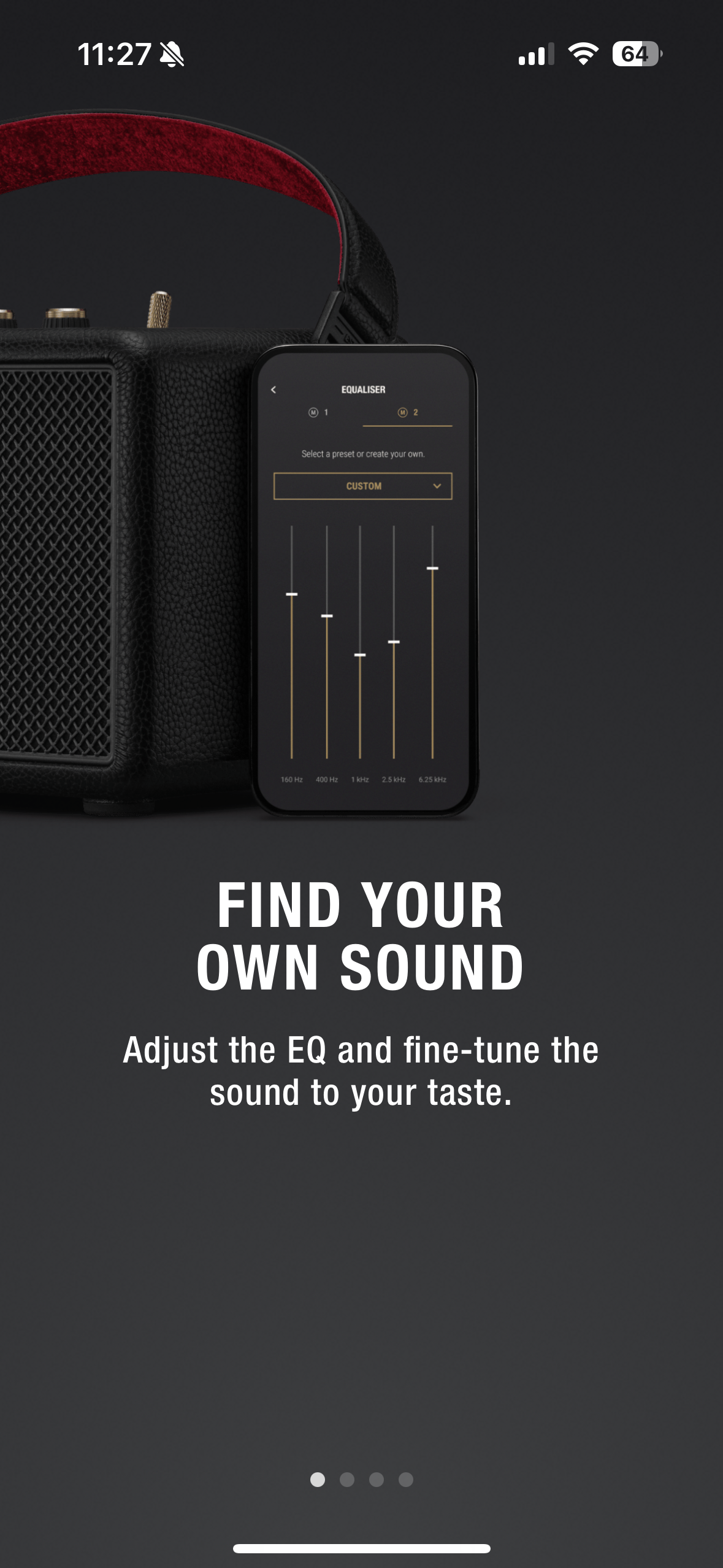 Pro kompletní kontrolu je k dispozici aplikace Marshall Bluetooth, která umožňuje aktualizovat firmware a přizpůsobit funkci multifunkčního „M“ tlačítka, například pro rychlé přepínání mezi přednastavenými profily ekvalizéru.
